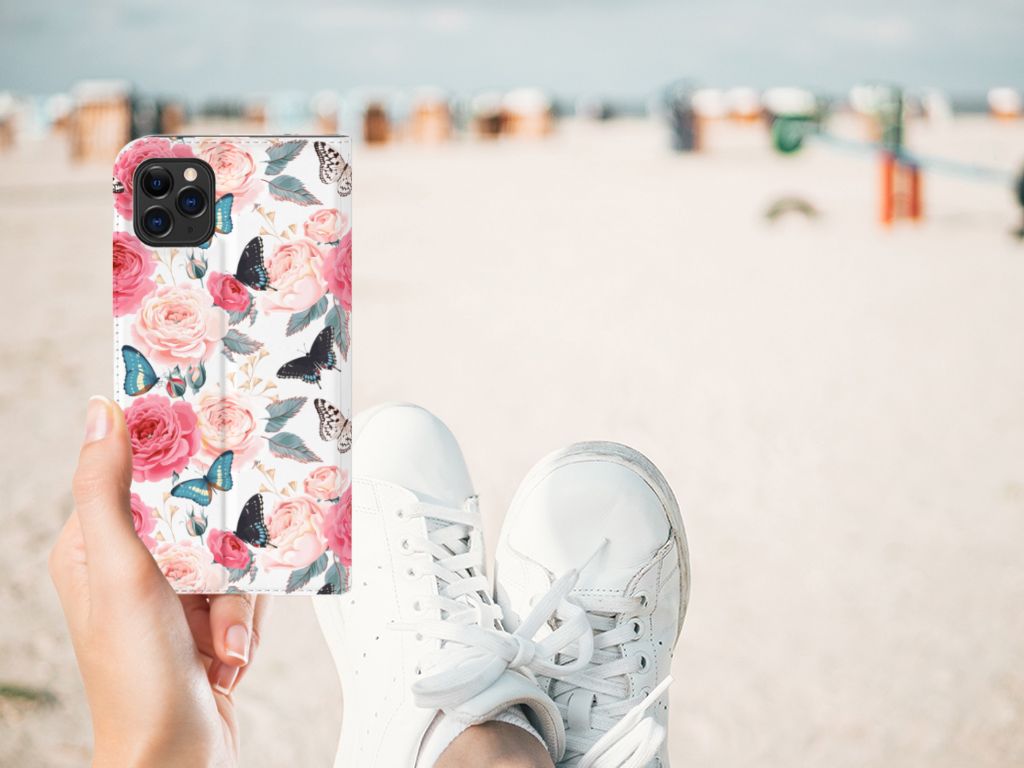 Ben je op zoek naar een uniek telefoonhoesje voor je Apple iPhone 11 Pro Max? Dan ben je bij B2C Telecom aan het juiste adres! Speciaal voor jou hebben we dit prachtige Butterfly Roses design in onze collectie hoesjes opgenomen. Het design wordt bedrukt op een Smart Cover en heeft een vakje aan de binnenkant voor een pasje. Het fijne aan dit hoesje is dat je het als standaard neer kunt zetten. Hierdoor geniet je nog meer als je een filmpje aan het kijken bent op je telefoon. Het hoesje wordt afgesloten door magneten aan de binnenkant. Wil je dit design hoesje nog iets extra's geven? Voeg dan gratis je naam of een quote toe! Is dit design hoesje toch niet helemaal wat je zocht? Ontwerp dan zelf een hoesje in ons ontwerpprogramma.