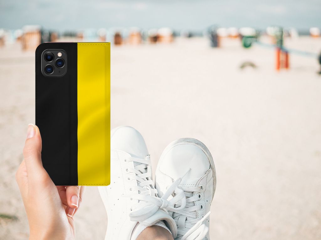 Dit design hoesje met Belgische kleuren van de vlag ziet er zeer fraai uit. De redenen om België te bezoeken zijn legio. Zo is Antwerpen een populaire stad om te winkelen, zijn Gent, Brussel en Brugge erg in trek als stedentripbestemming en kunnen natuur- en sportliefhebbers zich in grote delen van het land uitstekend vermaken. Wat België zo leuk maakt als bestemming is dat je direct het gevoel hebt in het buitenland te zijn, maar dat het toch heel vertrouwd aanvoelt. Ben jij liefhebber van dit gezellige land, dan zal dit design hoesje in Belgische kleuren je waarschijnlijk wel bevallen. Ze staan op een Apple iPhone 11 Pro Max Standcase. Deze case beschermt jouw telefoon aan alle kanten en beschikt over een 1 opbergvakje en een speciale standaard. Het hoesje wordt afgesloten met een magneet aan de binnenzijde. De houder aan de binnenzijde is van TPU.