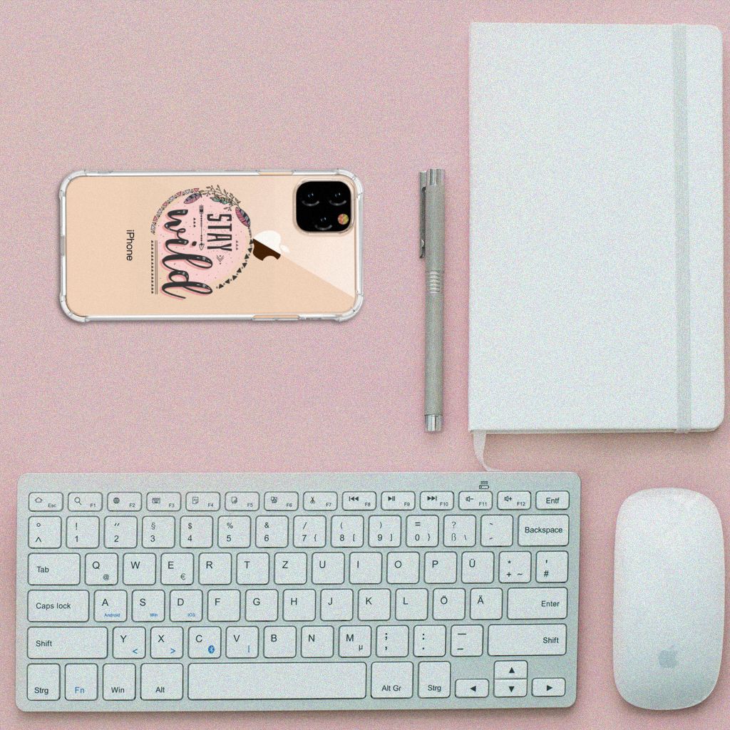 Ben je op zoek naar een uniek telefoonhoesje voor je Apple iPhone 11 Pro Max? Dan ben je bij B2C Telecom aan het juiste adres! Speciaal voor jou hebben we dit prachtige Boho Stay Wild design in onze collectie hoesjes opgenomen. Het design wordt bedrukt op een Stevig Bumper Hoesje en is gemaakt van flexibel rubber. Het hoesje is perfect voor de actieve smartphonegebruiker door de opstaande randen/hoeken. Denk aan mensen die veel sporten, reizen of wandelen en net iets meer zekerheid willen als het op hun geliefde telefoon aankomt. Het design wordt alleen aan de bovenkant van het hoesje bedrukt en de randen blijven transparant. Aan de zijkanten zijn uitsparingen gemaakt waardoor je met gemak alle knoppen en poorten kunt bedienen. Wij adviseren om dit hoesje in combinatie met een screenprotector te gebruiken voor een langere levensduur van je telefoon. Wil je dit hoesje nog iets extra's geven? Voeg dan gratis je naam of een quote toe! Is dit design hoesje toch niet helemaal wat je zocht? Ontwerp dan zelf een hoesje in ons ontwerpprogramma.
