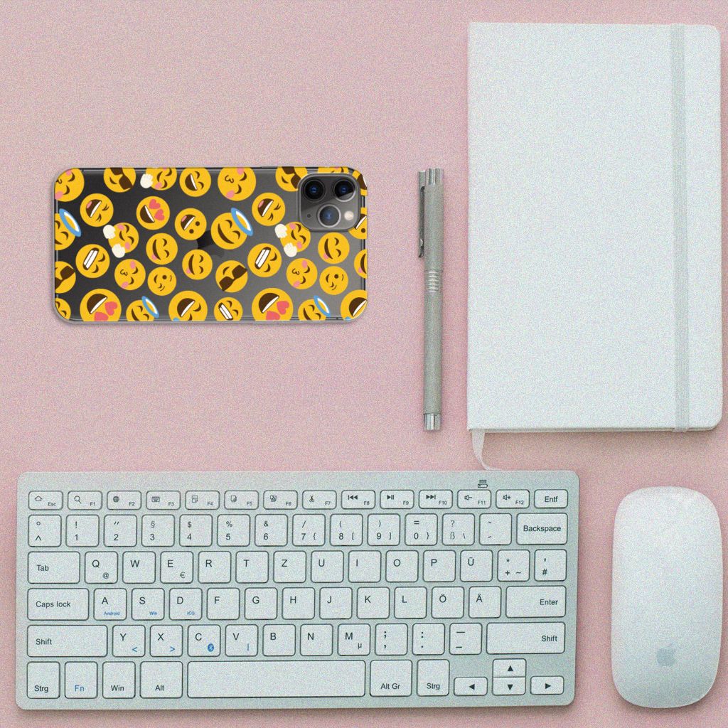 Je gebruikt ze waarschijnlijk dagelijks: emoji’s. Daarom hebben we besloten ze op een design hoesje te zetten. De kleurrijke, vaak gele emoticons maken chatberichten net wat spontaner. Dat hebben we allemaal te danken aan Japan, waar de emoji’s die we zo goed kennen vandaan komen. Ondertussen zijn er meer dan 1800! Deze passen natuurlijk niet allemaal op een Apple iPhone 11 Pro Max TPU bumper, maar we hebben de meeste gebruikte exemplaren erop gezet. Deze tpu case is voorzien van opstaande randen zodat het touchscreen van je telefoon beter is beschermd. Super handig. Het TPU zelf is zeer flexibel en is op maat gemaakt. We gebruiken emoji’s vaak om complete woorden te vervangen. Dit smartphone hoesje zegt dan ook meer dan duizend woorden kunnen. De tpu case wordt alleen aan de bovenzijde bedrukt met emoji’s. De zijkanten van de case worden niet bedrukt en blijven transparant.