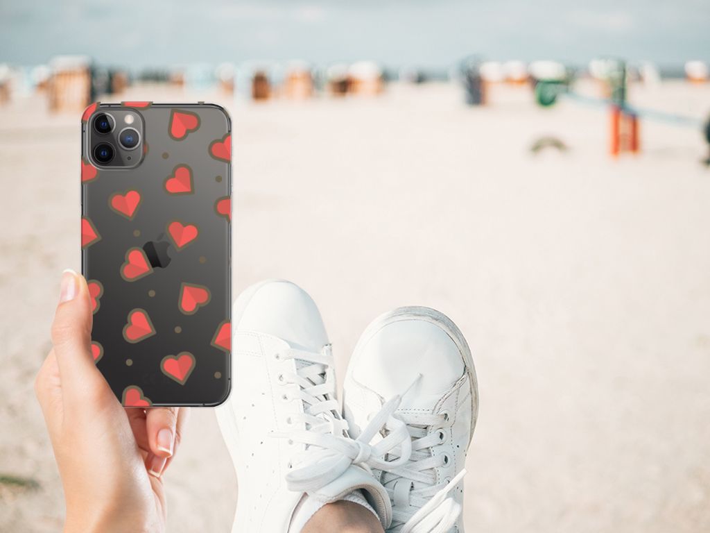 Met deze Apple iPhone 11 Pro Max TPU bumper met hartjes op een grijs met witte achtergrond maak jij een goede beurt als je dit cadeau geeft aan je vriend of vriendin. Bekroon je liefde voor elkaar met deze hele mooie tpu case, die jouw telefoon met name aan de achterkant en zijkanten goed beschermt. Dit is echt een prachtige manier om je telefoon te beschermen. Het tpu hoesje met design met Hearts is ook nog eens zeer praktisch, mede door het buigzame materiaal en de uitsparingen. Als je telefoon met het TPU hoesje uit je hand valt, stuitert het als het ware meteen weer terug in je hand en zal het scherm in tact blijven. De case heeft namelijk opstaande randen aan de voorkant. Alleen de bovenkant van de case wordt bedrukt met hartjes, de zijkanten zijn doorzichtig. Voor een habbekrats is dit hoesje met hartjes op een grijs met witte achtergrond te bestellen.
