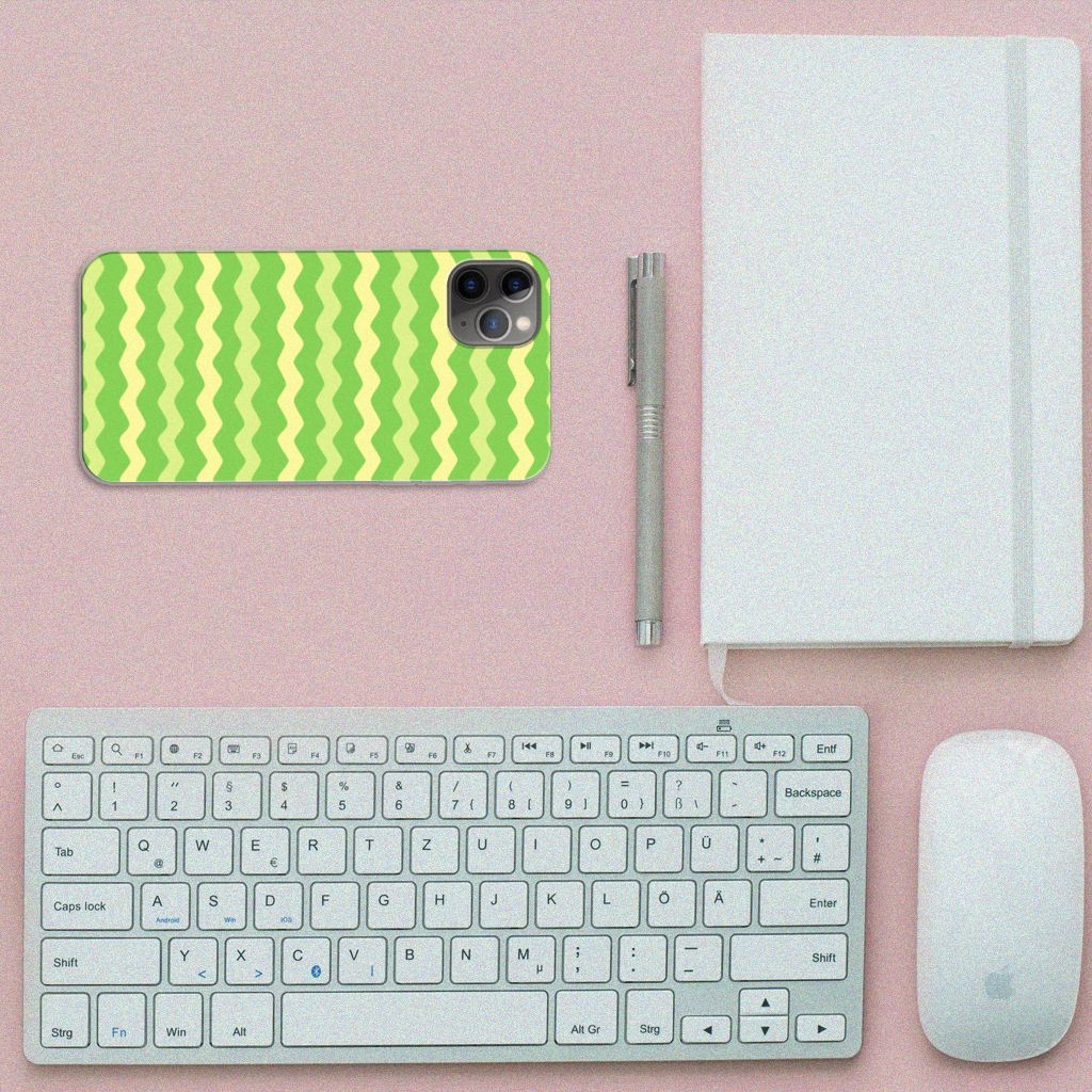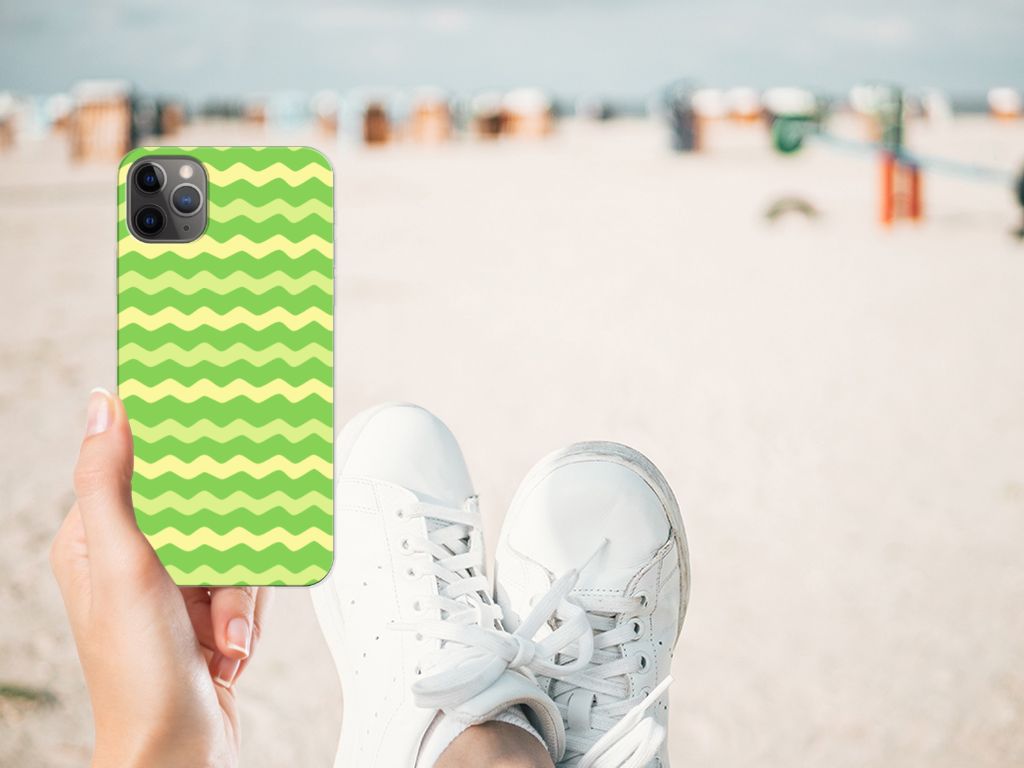 Dit groene design hoesje met groene golven is speciaal ontworpen voor jouw telefoon. We hebben een vleugje geel toegevoegd, zodat er sprake is van variatie. Dit Waves Green hoesje ziet er flitsend uit. Dat kan ook niet anders, als je weet dat we veel energie steken in het bedenken van originele designs. Een heel strak Apple iPhone 11 Pro Max TPU bumper, met zeer veel opties. Past dit groene design hoesje met golven goed bij jou? Bestel het dan vandaag nog, tegen zeer lage kosten. Het design staat op een TPU case. Dit hoesje wordt alleen aan de bovenkant bedrukt en is zeer flexibel. De randen van het hoesje met groene golven blijven transparant en worden niet bedrukt. Met dit hoesje past jouw telefoon altijd in je broekzak.