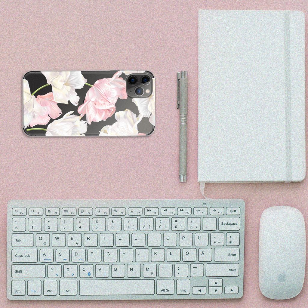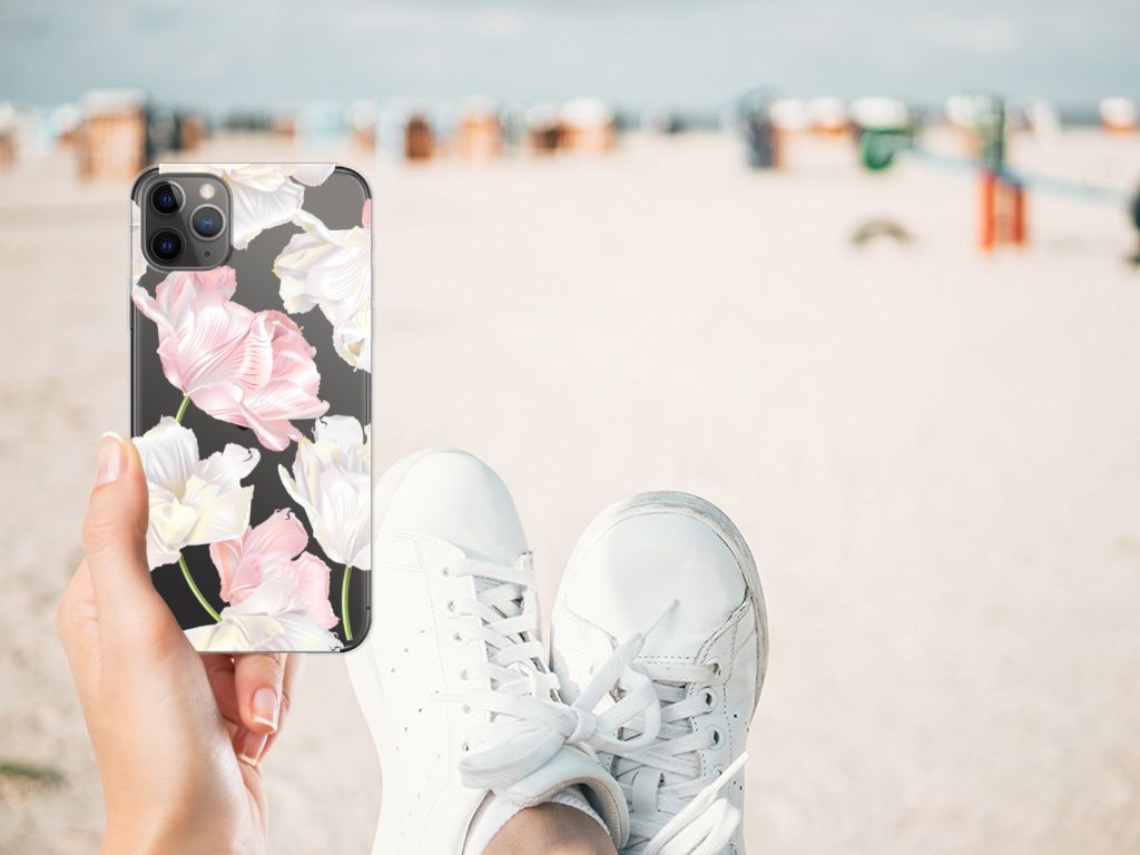 Een bosje bloemen doet een mens (en zijn smartphone) goed. De witte en roze bloemen op deze Apple iPhone 11 Pro Max TPU Case geven jouw smartphone een zeer mooie uitstraling. Je wordt er ook meteen een stuk rustiger van als je aan het appen of aan het bellen bent. Valt dan je telefoon op de grond, dan zal er dankzij de tpu case met het design Lovely Flowers ontstaan. Helemaal niet als je er een screenprotector bij hebt gekocht. Onze tpu cases met roze en witte bloemen zien er zeer prettig uit en zijn heel praktisch, getuige onder meer de opstaande randen en het flexibele materiaal. Alleen de achterkant van de tpu case wordt bedrukt met roze en witte bloemen. Op deze tpu case kun je trouwens ook een eigen ontwerp zetten. In een paar simpele stappen ontwerp je zelf een stand case met daarop jouw favoriete bloemen.