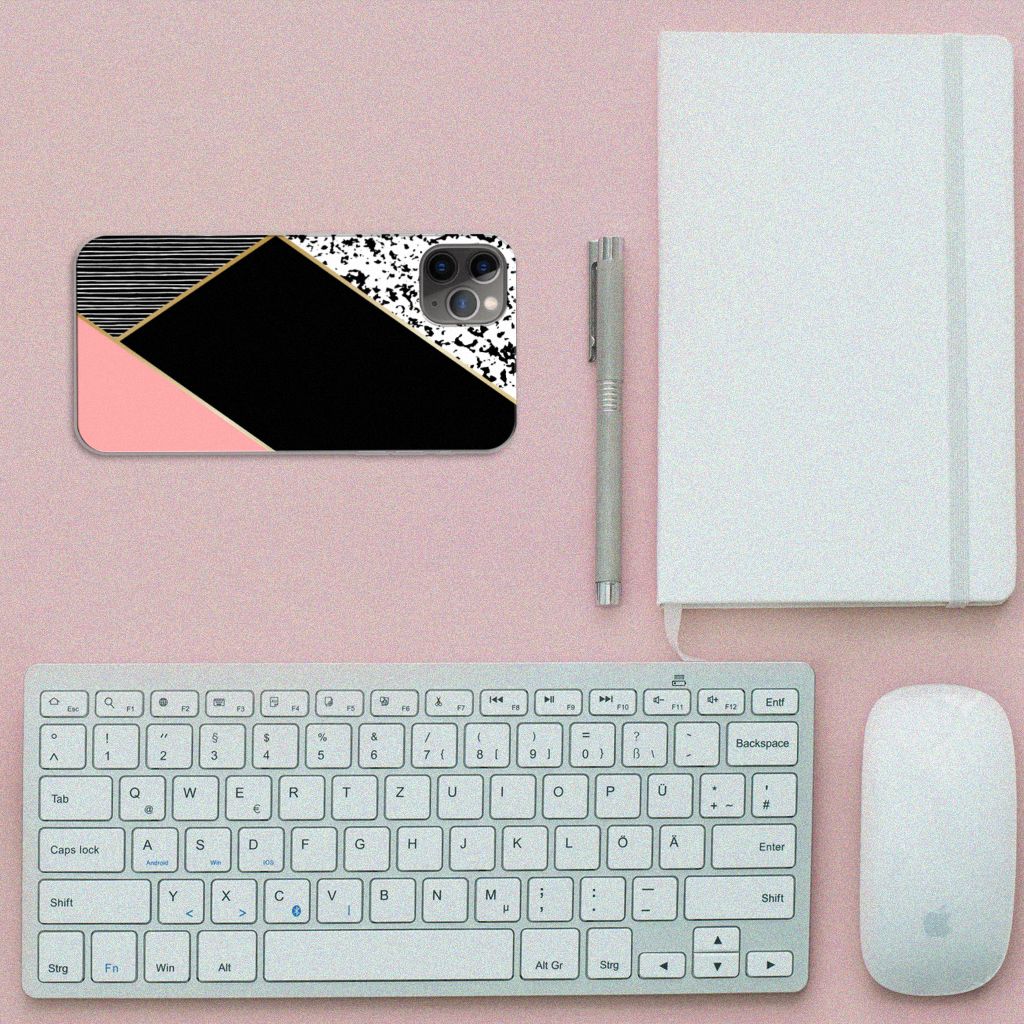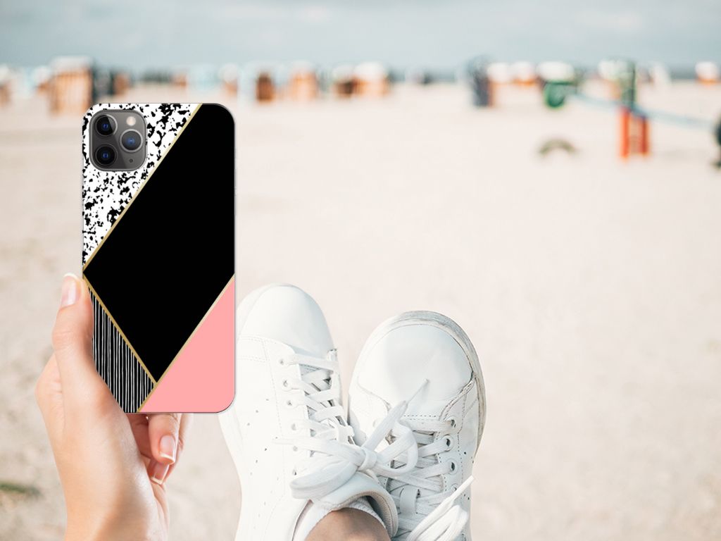 TPU Hoesje Apple iPhone 11 Pro Max Zwart Roze Vormen Design