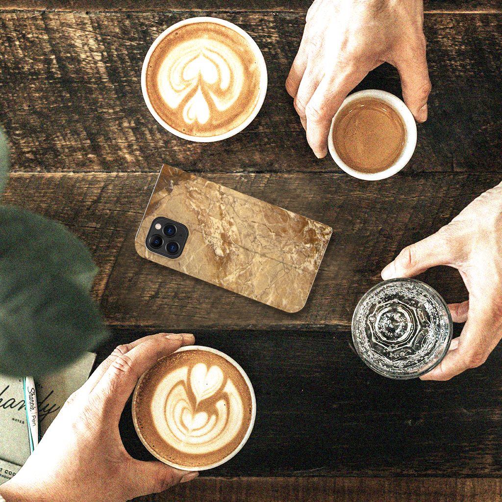 Dit design hoesje met Marmer in lichtbruine kleur is voor de artistiekelingen onder ons. De Grieken en Romeinen wisten het marmer al te waarderen door het in de bouw toe te passen. Naast het witte marmer zijn de diverse soorten marmer in een gevarieerde kleurensamenstelling te krijgen. We hebben verschillende mooie kleuren op design hoesjes gezet, zoals in dit geval het lichtbruine marmer. Dit is een Apple iPhone 11 Pro Standcase met marmer in lichtbruine kleur. Het marmer wordt bedrukt op alle zijden van een stand case, die beschikt over 1 vakje voor een pasje en een magnetische sluiting aan de binnenzijde. Verder heeft de hoes een houder van TPU. Door de rijkdom aan kleuren en varianties in afwerking kunnen ontwerpers met marmer schitterende architectonische projecten realiseren. Wij hebben hetzelfde gedaan en onze ontwerper veel vrijheid geboden. Het resultaat zie je terug in deze stand case met lichtbruin marmer, dat de ideale bescherming voor jouw smartphone is.