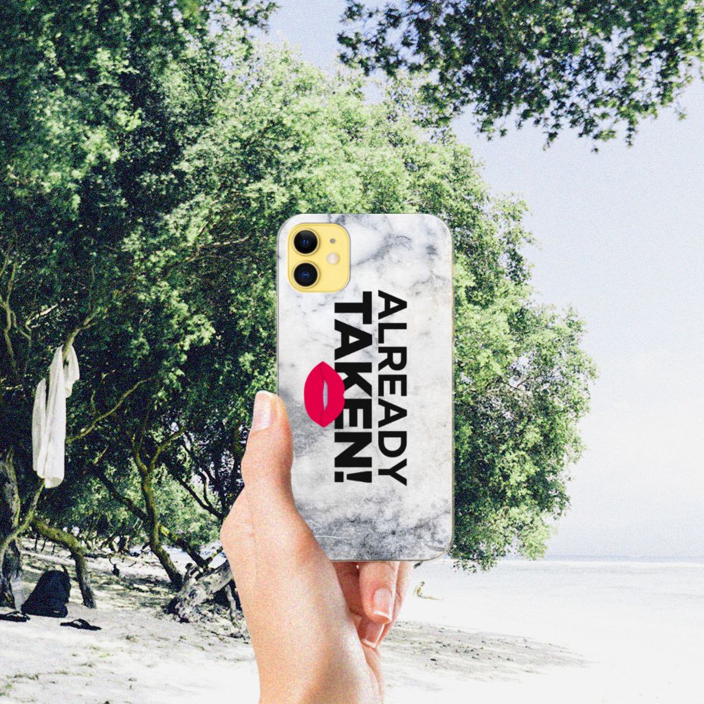 Stel dat je opdringende vrouwen of mannen van je af wil schudden op het moment dat je aan het feesten bent, omdat je al een partner hebt. Dan kun je dat met dit hoesje uitstekend duidelijk maken. Je Apple iPhone 11 neem je waarschijnlijk vaak ter hand, dus dan zal de boodschap als je over dit hoesje beschikt zeker weten overkomen. Ook in het openbaar vervoer zal dit hoesje ervoor zorgen dat je minder snel versierd wordt door het andere geslacht. Als je vrijgezel bent en op zoek naar gezelschap, dan kun je beter kiezen voor een ander hoesje uit ons ruime en gevarieerde assortiment. Het design Already Taken White staat op een Siliconen hoesje met naam. Dit hoesje wordt alleen aan de bovenkant bedrukt en is zeer flexibel. De randen van het hoesje blijven transparant.
