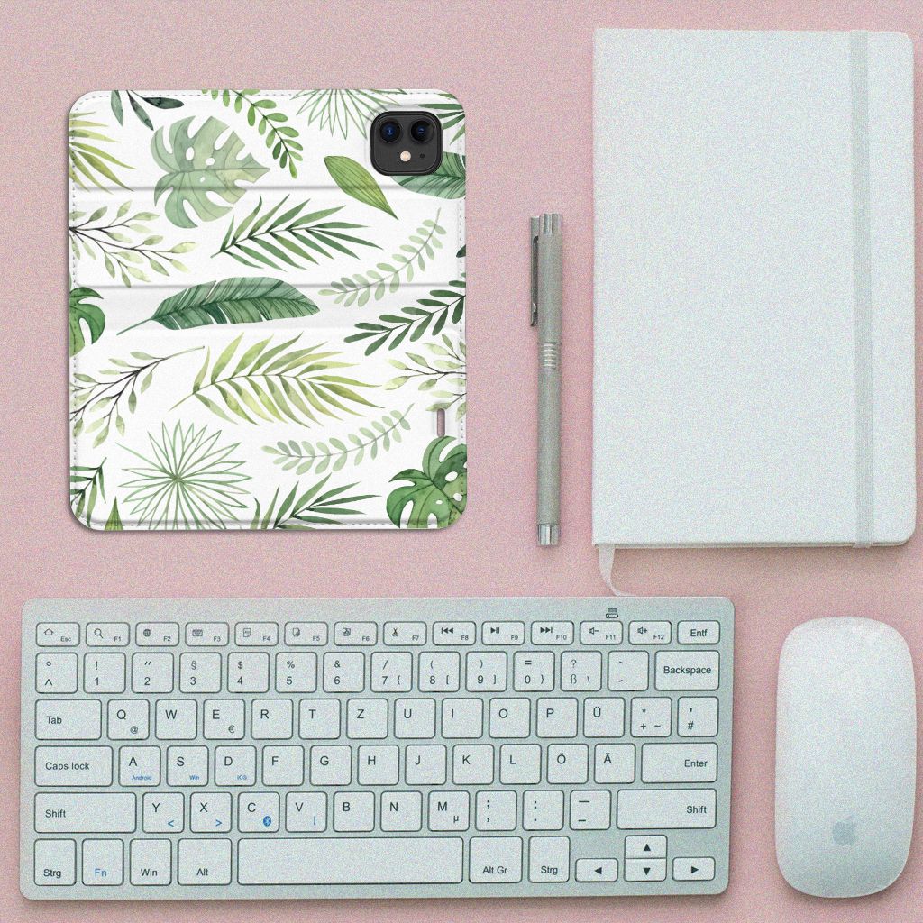Je voelt je verbonden met de natuur als je kiest voor deze Apple iPhone 11 Smart Cover met print Leaves. De print bestaat uit verschillende groene bladeren en dit zorgt voor een fraai decoratief geheel. Met dit patroon van groene bladeren creëer je een frisse uitstraling voor jouw smartphone. Jij doet er verstandig aan om je telefoon te beschermen met dit design hoesje met groene bladeren, die staan op een stand case. Dit hoesje kenmerkt zich onder meer door het handige vakje aan de binnenzijde en de magnetische sluiting aan de binnenzijde. Voel jij jezelf gezond met een beeld van groene bladeren, dan is deze stand case met print een uitstekende optie. Het beschermt jouw telefoon aan alle zijden. Het TPU aan de binnenzijde klemt zich perfect om jouw smartphone. Kijk ook eens naar onze andere hoesjes met bladeren of misschien maak je zelf wel gewoon liefst je eigen hoesje met eigen foto’s van bladeren.