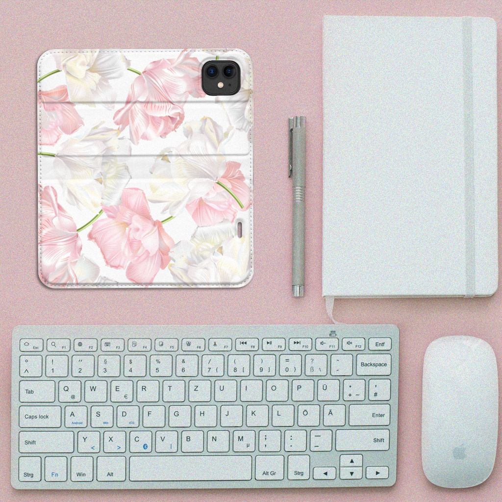 Een bosje bloemen doet een mens (en zijn smartphone) goed. De witte en roze bloemen op dit Apple iPhone 11 Smart Cover geven jouw smartphone een zeer mooie uitstraling. Je wordt er ook meteen een stuk rustiger van als je aan het appen of aan het bellen bent. Valt dan je telefoon op de grond, dan zal er dankzij de stand case met het design Lovely Flowers ontstaan. Onze stand cases met roze en witte bloemen zien er zeer prettig uit en zijn heel praktisch, wat blijkt uit onder meer het vakje aan de binnenkant en de handige standaard waarmee je de smartphone rechtop op tafel neer kunt zetten. De roze en witte bloemen passen goed op alle zijden van de case. Op deze stand case van leer en TPU (houder aan de binnenkant) kun je trouwens ook je eigen bloemige ontwerp zetten. In een paar simpele stappen maak je zelf een stand hoesje met daarop jouw mooiste bloemen.