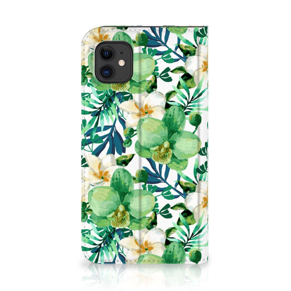 Apple iPhone 11 Telefoonhoesje met Pasjes Pauw met Bloemen