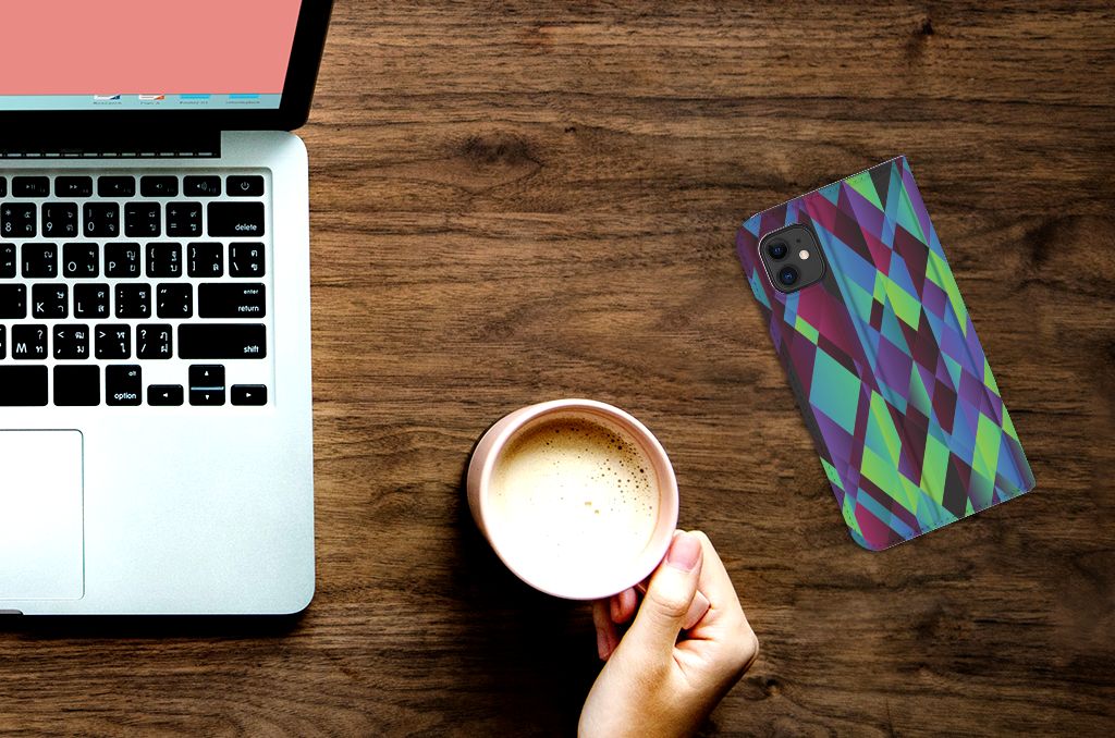 Apple iPhone 11 Book Case Zwart Roze Vormen