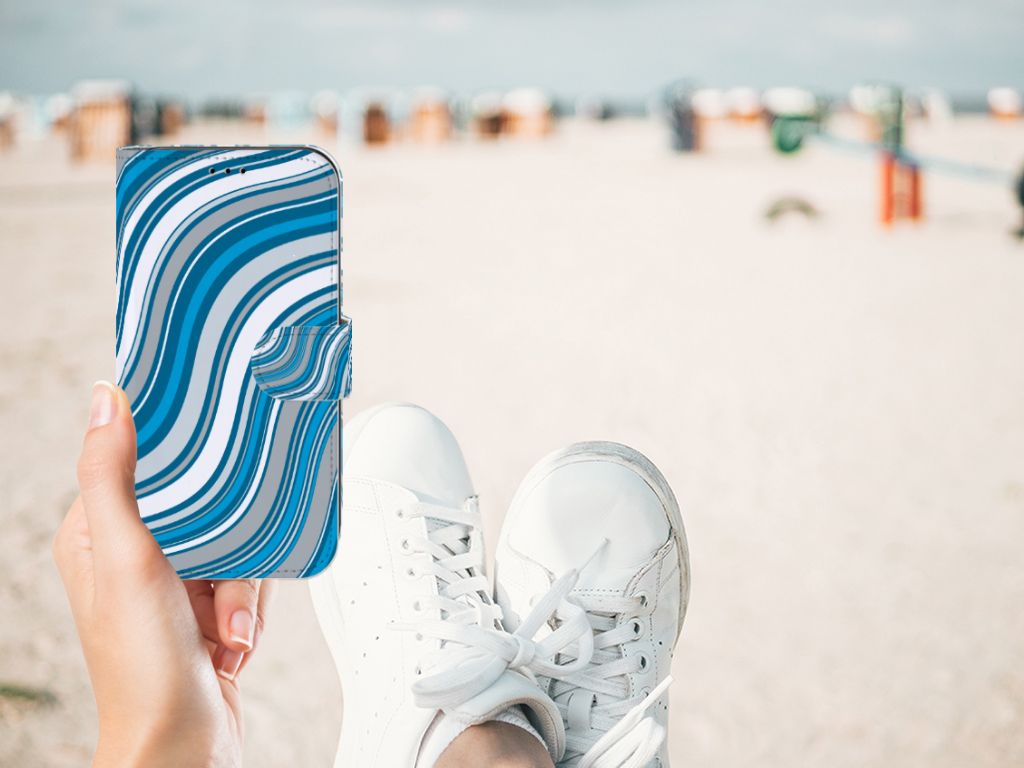 Zeer cool, dit hoesje met vooral blauwe kleuren, die in een golvende beweging jouw telefoon van een mooie uitstraling voorzien. Tijdens een zonnige vakantie aan zee is jouw smartphone perfect beschermd met dit telefoonhoesje. Het design Waves Blue van dit smartphone hoesje doet lichtjes denken aan een lolly, waarmee je een klein kind zeer blij maakt. Jouw Apple iPhone 11 zal er ook zeer vrolijk uitzien samen met dit design hoesje. De witte en grijze kleuren staan in mooi contrast met het blauw, waardoor de uitstraling van deze accessoire zeer mooi is. Ook voor andere kleuren kun je natuurlijk uitstekend terecht in ons assortiment. Het design staat op een boekhoesje. Dit Telefoon Hoesje beschermt jouw telefoon aan alle zijden en beschikt over verschillende opbergvakjes voor pasjes en briefgeld. De case sluit perfect af met het lipje aan de buitenkant. De houder aan de binnenzijde is van TPU.