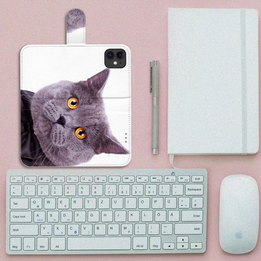 Ben jij ook dol op katten? Dan is dit Apple iPhone 11 telefoonhoesje misschien wel wat voor jou. De kat die je ziet op dit hoesje is een bijzondere verschijning met zijn paarse vacht en oranje ogen. Maar misschien heb je zelf wel een kat en wil je die liever op jouw Apple iPhone 11 Telefoonhoesje met Pasjes terugzien? Dat is ook mogelijk! Je kunt jouw boekhoesje helemaal zelf ontwerpen met een foto naar keuze. Daarnaast zou je er zelfs de naam van jouw kat bij kunnen zetten of een ander stukje tekst.
