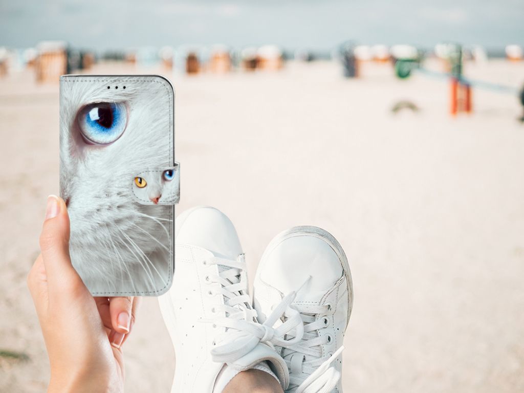 Witte katten zijn erg bijzonder en dat is precies de reden dat wij deze op prominente wijze op dit design hoesje hebben geplaatst. Maar deze witte kat is extra speciaal, doordat de ogen twee verschillende kleuren hebben: blauw en vurig rood. Hiermee heb jij als uniek mens ook een unieke bookcase. Ook de manier waarop dit telefoonhoesje voor de Apple iPhone 11 is bedrukt, is bijzonder. Je ziet namelijk een kleinere versie van dezelfde kat terug op het lipje. Hierdoor zie je de speciale witte kat twee keer terugkomen op jouw hoesje. Omdat je waarschijnlijk een dierenliefhebber bent als je dit Telefoonhoesje met Pasjes uitkiest, is dit ook een erg duurzaam hoesje. Het hoesje wordt aan alle kanten met duurzame inkt bedrukt.