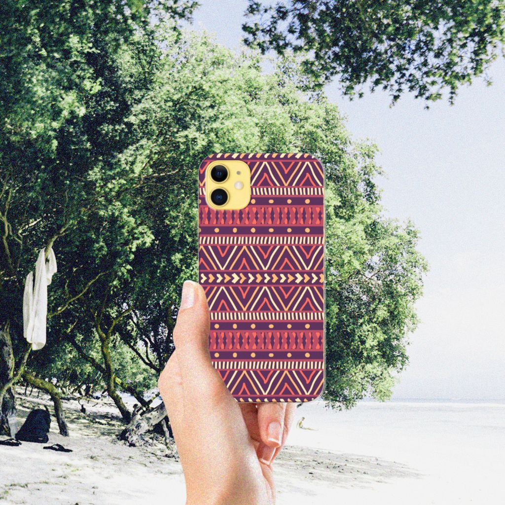De Azteken leefden tussen 1200 en 1521 in het huidige Mexico. De mooie Aztec-patronen waar zij bekend om stonden, zien we nu nog op kleding, stoffen en tassen. Wie had toen kunnen bedenken dat we diezelfde prints honderden jaren later zelfs op een telefoonhoesje zouden vinden? Dit kleurrijke Aztec Purple-hoesje is perfect voor iedereen die een stukje geschiedenis bij zich wil dragen maar ook gewoon een mooi patroon op zijn hoesje wil. Dit vrolijke, kleurrijke ontwerp staat op een TPU bumper voor de Apple iPhone 11. TPU is flexibel en onbreekbaar. Zo is je telefoon aan de achterkant en de randen heel goed beschermd. De case is aan de bovenkant bedrukt, de randen blijven transparant.