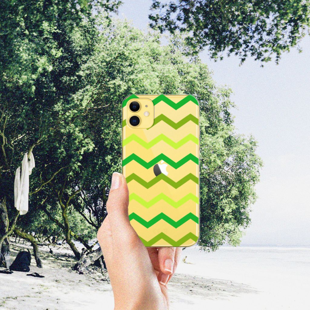 Dit zigzag groene design hoesje is speciaal ontworpen voor jou. We hebben bewust verschillende stijlen groen gebruikt, zodat er voldoende sprake is van variatie. Dit groene hoesje ziet er super strak uit. Dat kan ook niet anders als je weet dat onze designer zijn creativiteit heeft gebruikt. Hij schudt voortdurend nieuwe designs uit zijn mouw en dit zigzag groene hoesje is een van zijn fraaiste creaties. Een heel tof Apple iPhone 11 TPU bumper, al zeggen we het zelf. Valt dit Zigzag Groen design hoesje goed bij jou? Bestel het dan vandaag nog en je hebt het morgen in huis. Het design staat op een TPU case. Dit hoesje wordt alleen aan de bovenkant bedrukt en is zeer flexibel. De randen van het hoesje blijven transparant en worden niet bedrukt. Met dit hoesje past jouw telefoon altijd in je broekzak.