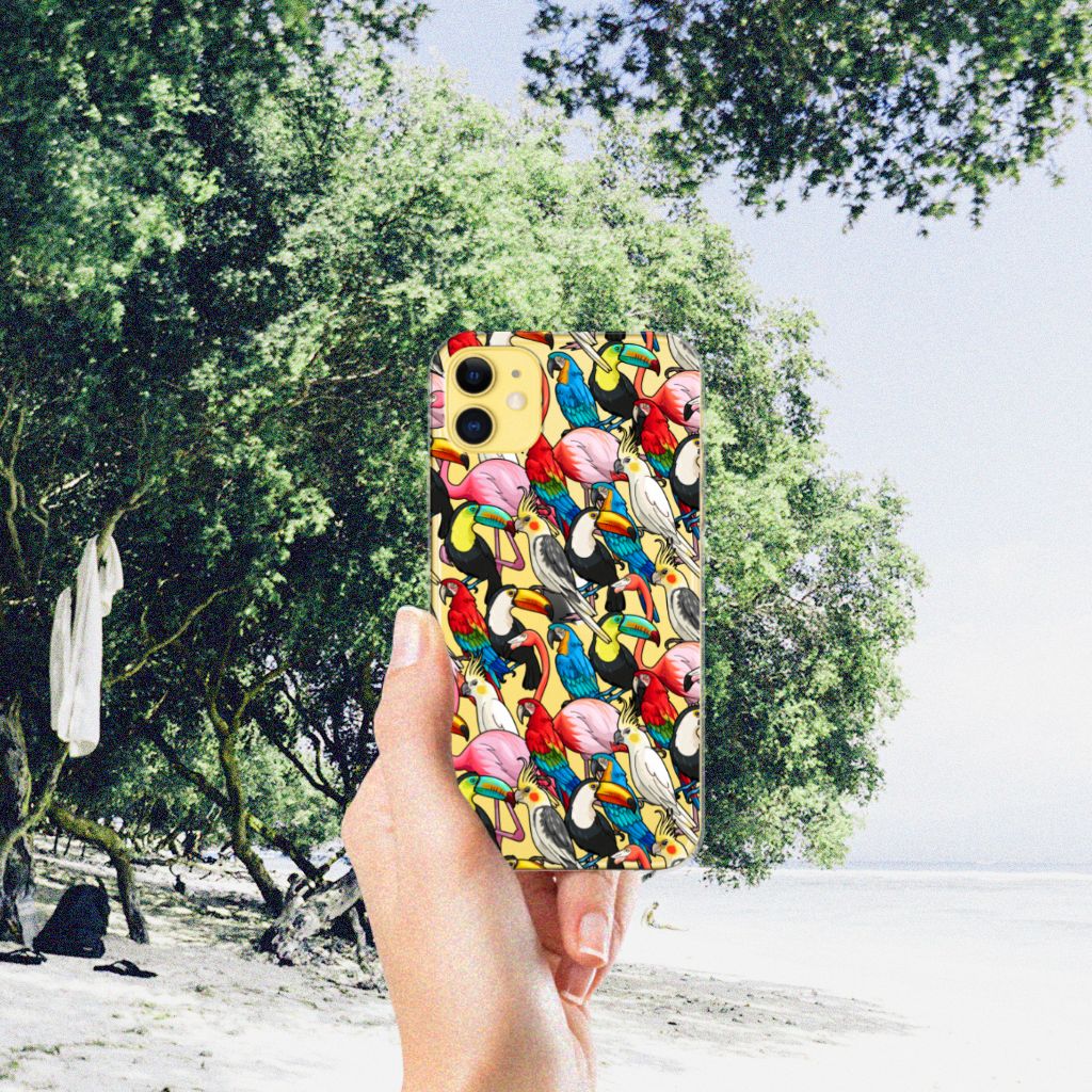 Dit exotische hoesje vol prachtige vogels is een genot voor het oog. Dankzij de felgekleurde toekans, papegaaien, flamingo’s en kaketoes op dit design word je meteen vrolijk als je naar dit hoesje kijkt. Je waant je meteen in de tropen met dit bonte gezelschap tegen een witte achtergrond. Het ontwerp staat op een TPU Hoesje voor de Apple iPhone 11. TPU is een flexibel en onbreekbaar materiaal. Zo is je telefoon aan de achterkant en de randen heel goed beschermd. De case met het birds-design is aan de bovenkant bedrukt, de randen blijven transparant. Het TPU-hoesje is perfect te combineren met een screenprotector. Zo zijn je telefoon en je beeldscherm optimaal beschermd.