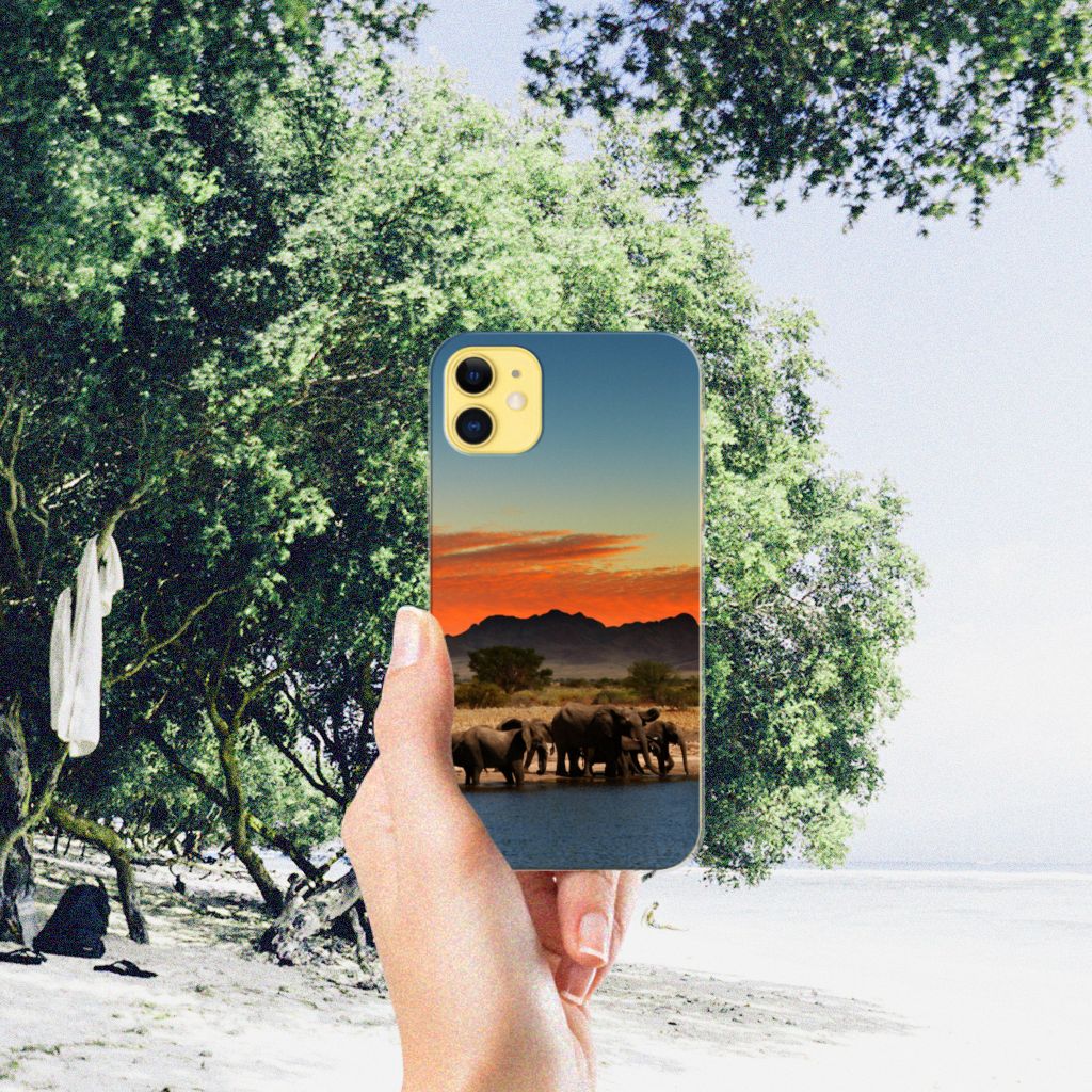 Dit hoesje is zo sterk als een olifant. Dat is goed nieuws, want jouw telefoon heeft een zeer goede bescherming nodig. Dat krijg je met dit design hoesje met print van Olifanten. De Afrikaanse olifant, het allergrootste landdier ter wereld, heeft waarschijnlijk het meest te lijden gehad van stroperij om het ivoor. Deze dieren verdienen dus een goede bescherming, net als jouw smartphone. Met een Apple iPhone 11 TPU Hoesje met olifant erop krijg je dit zeker voor elkaar. De tpu case beschermt vooral de achterkant en zijkanten van je telefoon en is gemaakt van onbreekbaar materiaal. De sterke olifant komt zeer goed tot zijn recht op deze case, die zeer flexibel is. Alleen de bovenzijde van de case wordt bedrukt met olifanten, de zijkanten blijven transparant.
