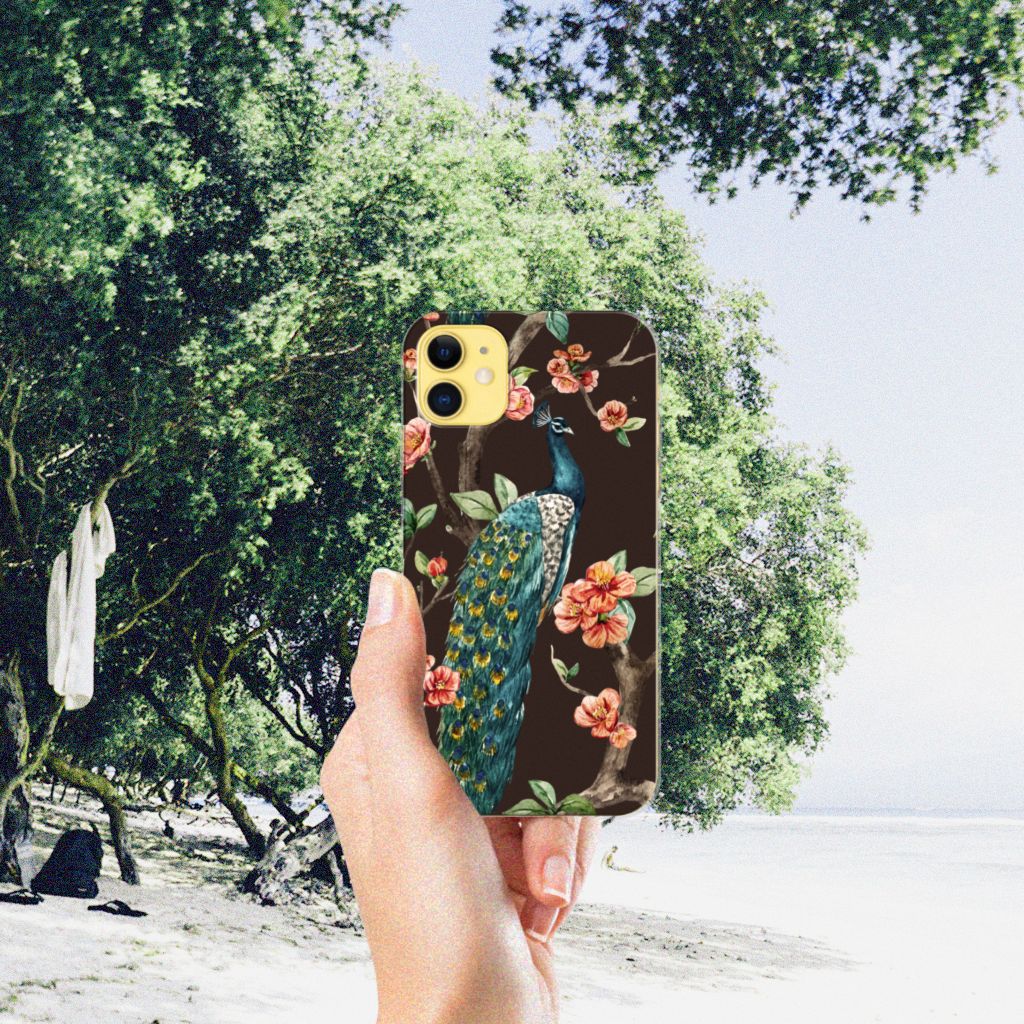 Apple iPhone 11 Telefoonhoesje met Pasjes Pauw met Bloemen