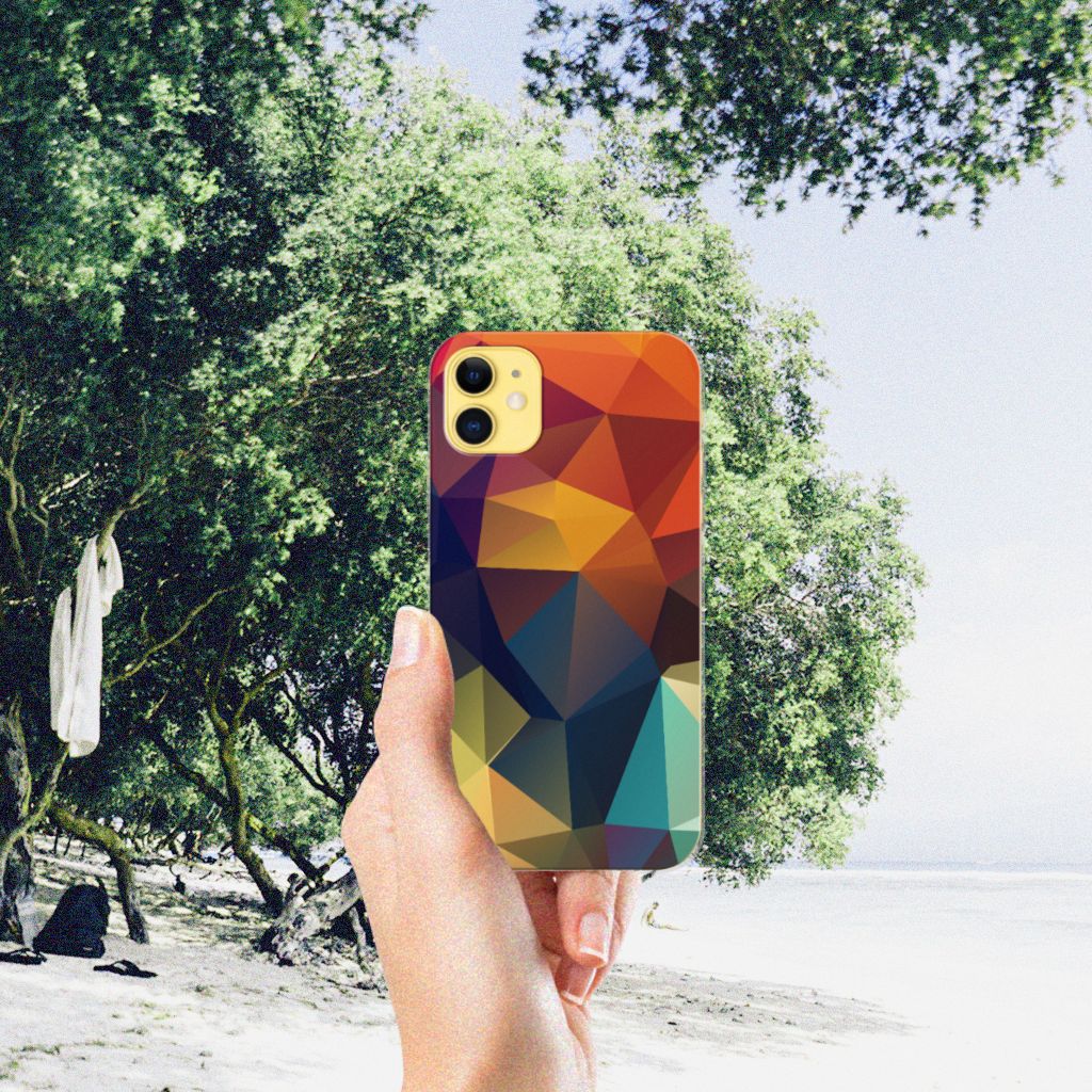 Veelkleurige driehoeken die samen eindeloze asymmetrische patronen lijken te vormen. Het is het abstracte schouwspel dat op dit fraaie hoesje voor je Apple iPhone 11 direct de aandacht trekt noemen we voor het gemak trekt noemen we voor het gemak Polygon Color. De een ziet er een berglandschap in, de ander piramides. Wat zie jij erin? Zeker is in elk geval dat de aanblik van dit fascinerende ontwerp je niet snel gaat vervelen. Het kleurige spel van lijnen en vlakken blijft eindeloos boeien en geeft jouw TPU Hoesje een hippe en kunstzinnige uitstraling. De kracht die het lijnenspel uitstraalt, komt ook terug in het hoesje zelf. Dit hoesje wordt alleen aan de bovenkant bedrukt en is zeer flexibel. De randen van het hoesje blijven transparant. Wat wil je nog meer?