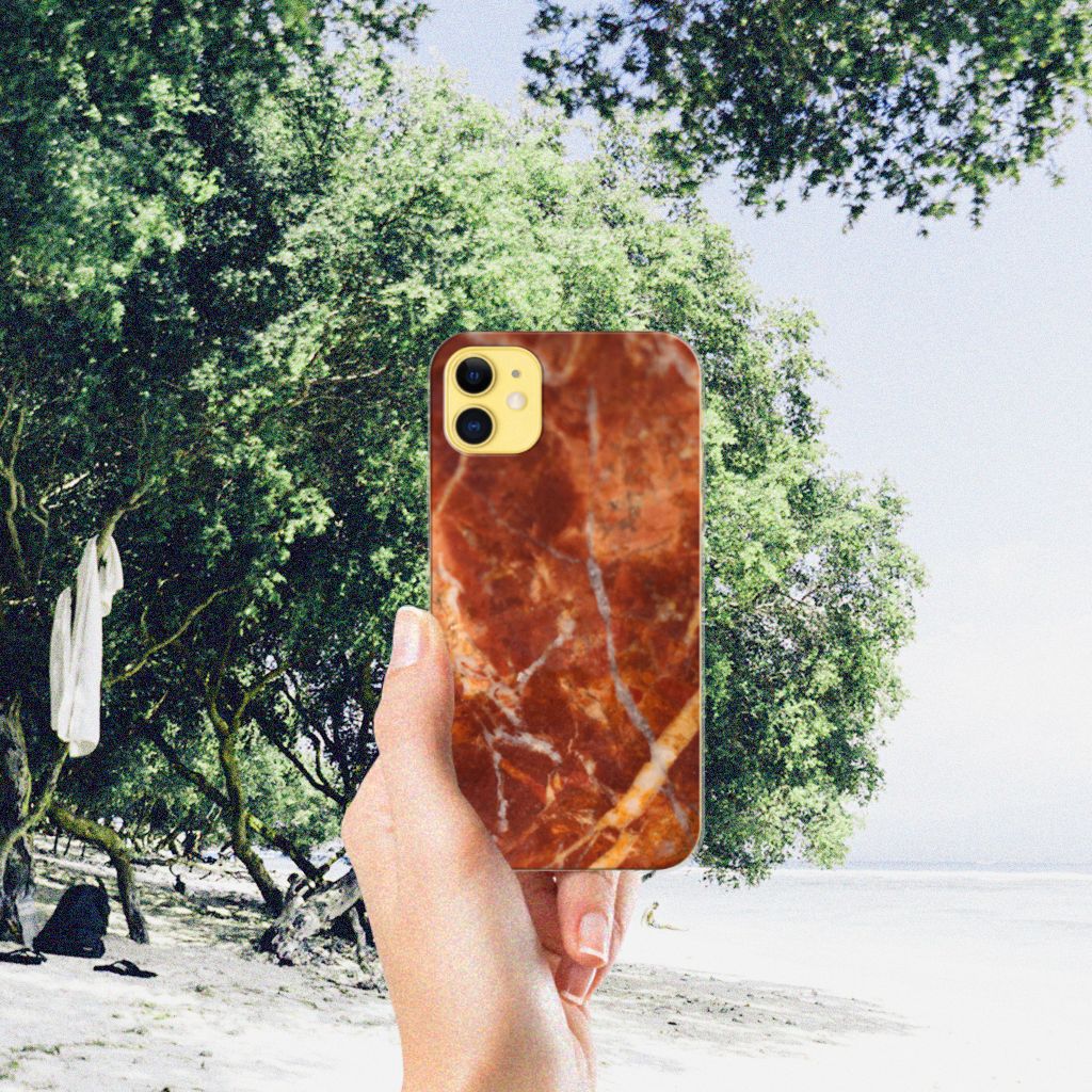 Dit design hoesje met Marmer Bruin is voor de artistieke personen onder ons. De Grieken en Romeinen wisten het al te waarderen door het als bouw- en bekledingsmateriaal toe te passen. Naast het witte Carrara marmer met haar zacht grijze geaderde belijning zijn de diverse soorten in een ruim kleurenpallet te krijgen. We hebben verschillende kleuren op design hoesjes gezet, zoals in dit geval bruin marmer. Dit is een Apple iPhone 11 TPU Siliconen Hoesje met marmer in bruine kleur. Het marmer wordt bedrukt op de voorkant van een tpu case, die beschikt over opstaande randen aan de voorkant en heel goed combineert met een screenprotector. De rijkheid aan kleuren en varianties in afwerking geeft ontwerpers de vrijheid om met marmer hele mooie architectonische projecten te realiseren. Wij hebben onze designer ook veel vrijheid gegeven. Het resultaat zie je terug in deze tpu case met bruin marmer, die jouw smartphone goed beschermt. De zijkanten van de case worden niet bedrukt met marmer.