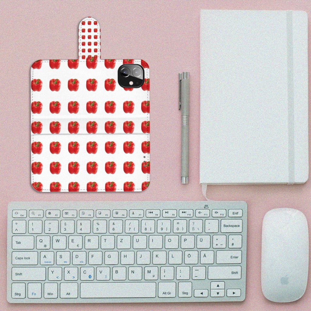 Er zit pit in jouw Apple iPhone 12 Mini Book Cover dankzij dit design met rode paprika’s. Paprika’s zijn er in allerlei kleuren en vormen en ze hebben gemeen dat ze heel erg gezond zijn. De rode paprika’s op deze case staan op een grijs met witte geblokte achtergrond en vormen een opvallende verschijning. Heb jij ooit iemand in je nabije omgeving rond zien lopen met een design hoesje met rode paprika’s? Waarschijnlijk niet. Dit boekhoesje met rode paprika’s beschermt jouw telefoon aan alle zijden en beschikt over verschillende opbergvakjes voor pasjes en briefgeld. De case sluit perfect af met het magnetische lipje aan de buitenkant. Zeker weten dat je met dit hoesje met rode paprika’s een smartphone accessoire te pakken hebt waarmee je jezelf in de schijnwerpers zet. De houder aan de binnenzijde van het boekhoesje met rode paprika’s is van TPU. Als je andere kleuren paprika’s op je hoesje wilt, raden we je aan ons assortiment design hoesjes te bekijken of zelf een hoesje te ontwerpen.
