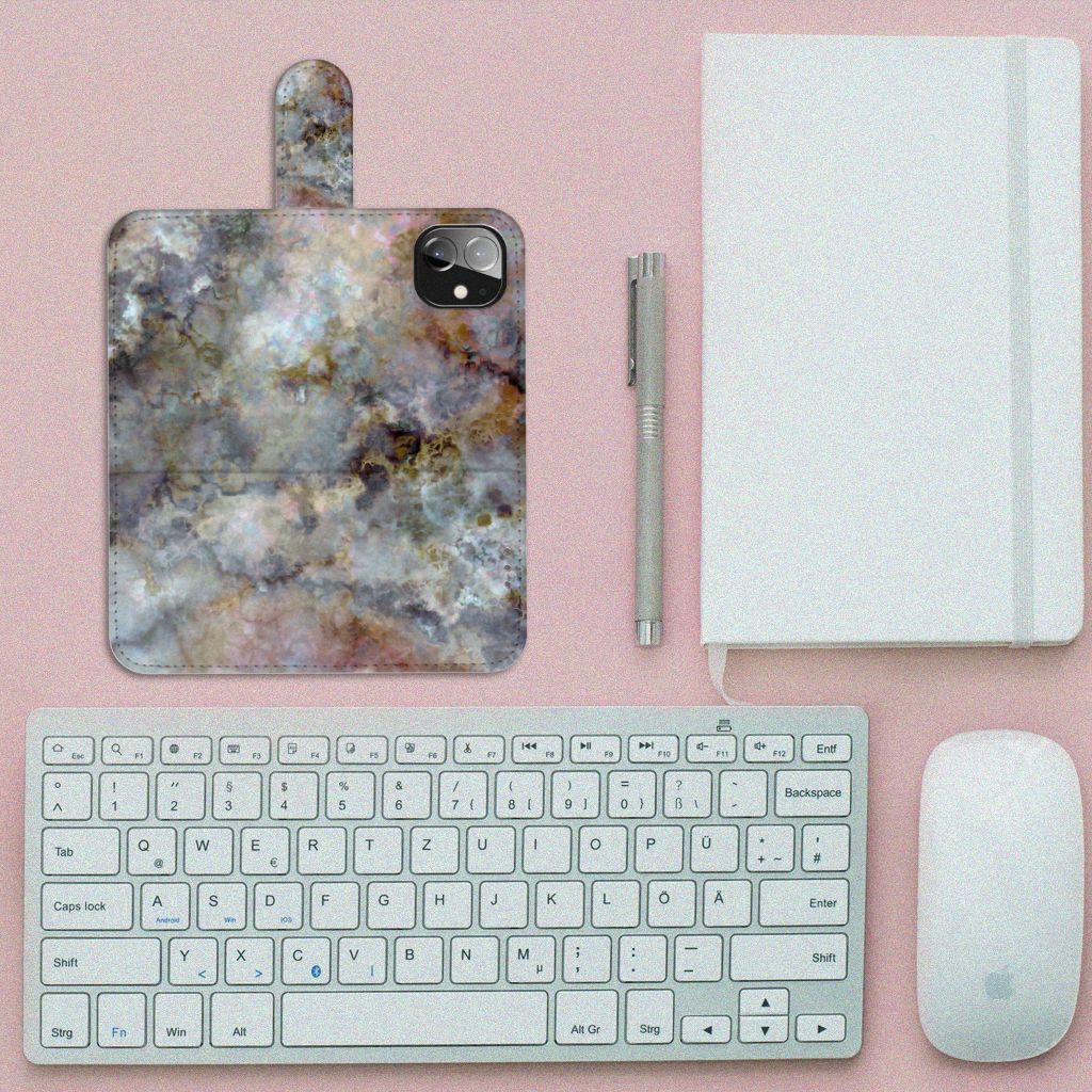 Apple iPhone 12 Mini Bookcase met ruimte voor 3 pasjes Marmer Grijs