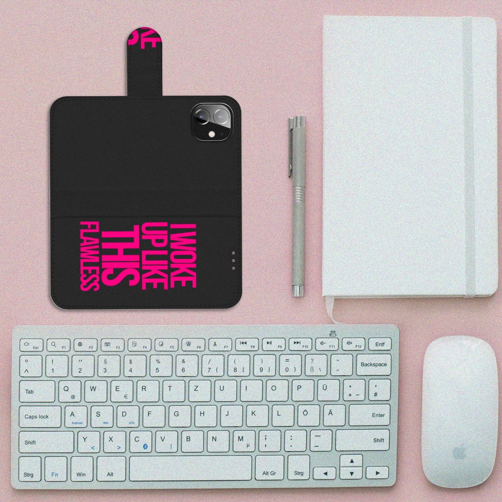 Met dit zwarte Apple iPhone 12 Mini Hoesje met naam met paarse tekst heb je een geweldige bescherming van je smartphone in handen. Dit zwarte hoesje met Woke Up tekst is een must voor jouw smartphone. Met dit design hoesje tekst val je ook zeker op. Je weet ook zeker dat het hoesje exclusief is. Het design is gemaakt door B2C Telecom. Het hoesje heeft verschillende vakjes en is aan alle zijden bedrukt. Ook het lipje aan de buitenkant kan worden bedrukt. De houder is van TPU, de buitenzijde van PU-leer. We willen je er ook op wijzen dat je zelf een hoesje kunt ontwerpen, met eigen beelden en teksten. Met onze Phone Case Designer kun je zelfs opvallende effecten, patronen en clip arts aan het ontwerp toevoegen.