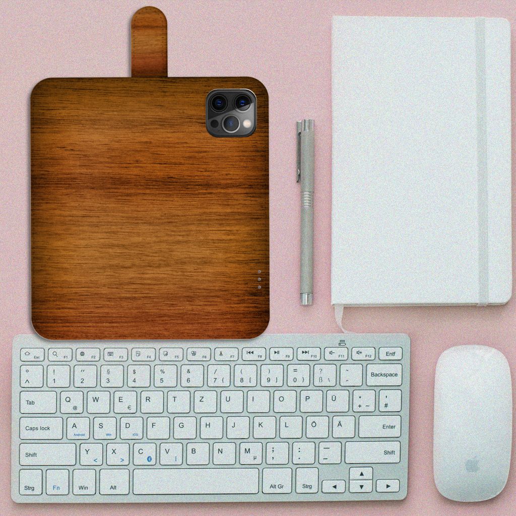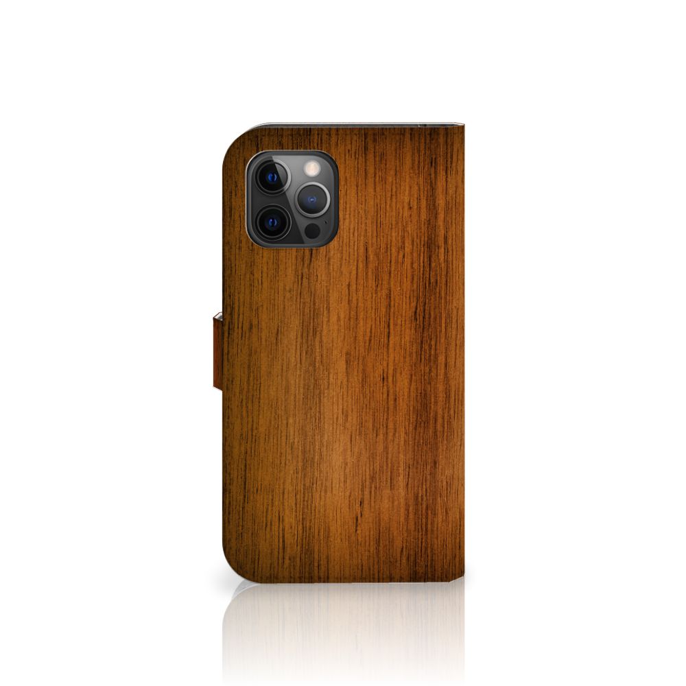 Apple iPhone 12 Pro Max Book Style Case met pasjeshouder Donker Hout