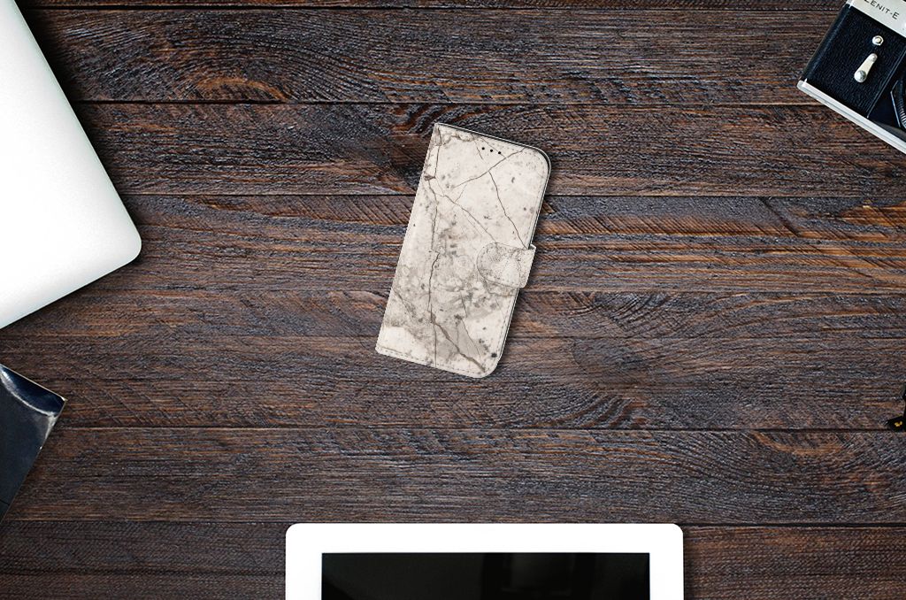 Apple iPhone 13 Bookcase met pasjes Marmer Beige