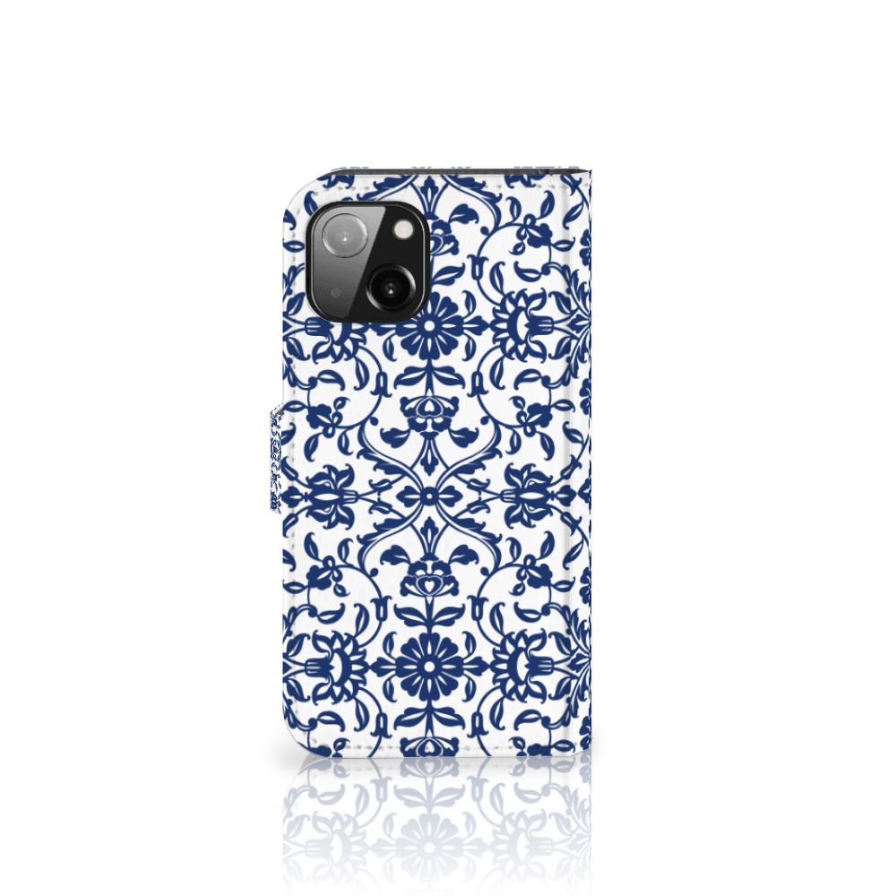 Apple iPhone 13 Hoesje met ruimte voor drie pasjes Flower Blue