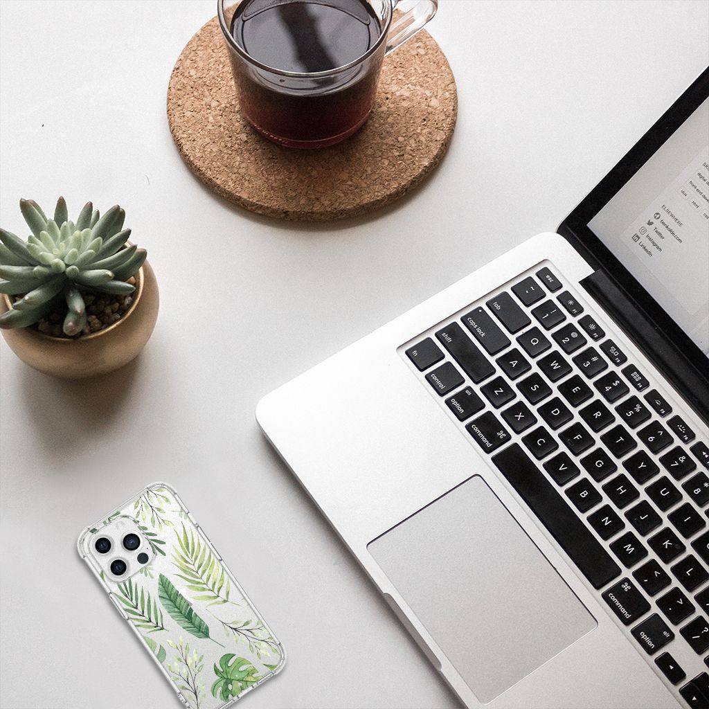 Ben je op zoek naar een uniek telefoonhoesje voor je Apple iPhone 13 Pro? Dan ben je bij B2C Telecom aan het juiste adres! Speciaal voor jou hebben we dit prachtige Leaves design in onze collectie hoesjes opgenomen. Het design wordt bedrukt op een Case en is gemaakt van flexibel rubber. Het hoesje is perfect voor de actieve smartphonegebruiker door de opstaande randen/hoeken. Denk aan mensen die veel sporten, reizen of wandelen en net iets meer zekerheid willen als het op hun geliefde telefoon aankomt. Het design wordt alleen aan de bovenkant van het hoesje bedrukt en de randen blijven transparant. Aan de zijkanten zijn uitsparingen gemaakt waardoor je met gemak alle knoppen en poorten kunt bedienen. Wij adviseren om dit hoesje in combinatie met een screenprotector te gebruiken voor een langere levensduur van je telefoon. Wil je dit hoesje nog iets extra's geven? Voeg dan gratis je naam of een quote toe! Is dit design hoesje toch niet helemaal wat je zocht? Ontwerp dan zelf een hoesje in ons ontwerpprogramma.