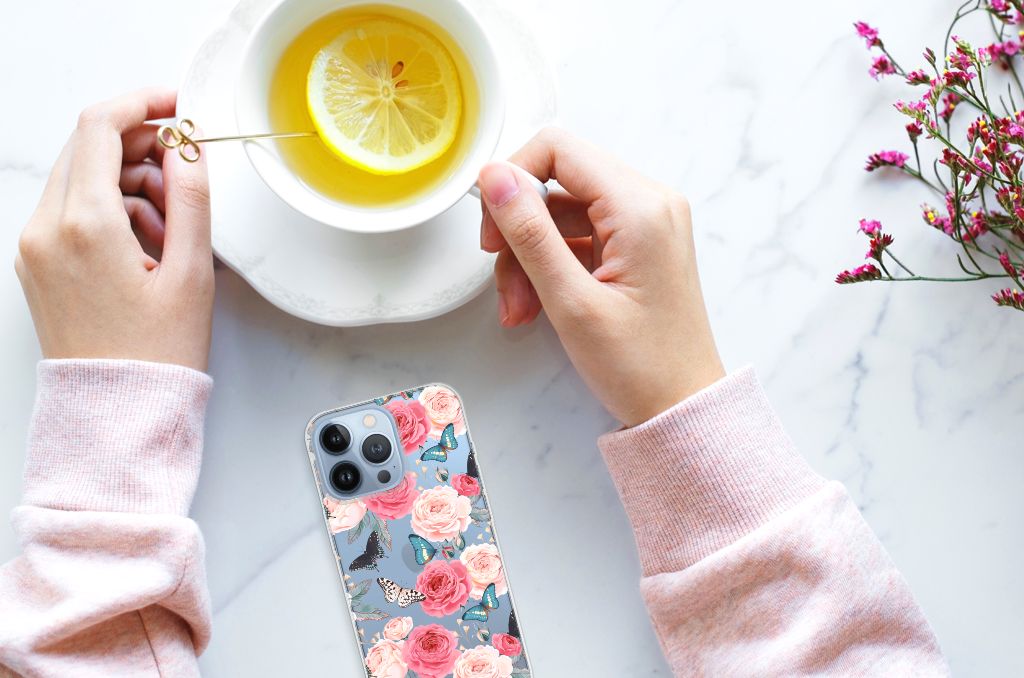 Ben je op zoek naar een uniek telefoonhoesje voor je Apple iPhone 13 Pro? Dan ben je bij B2C Telecom aan het juiste adres! Speciaal voor jou hebben we dit prachtige Butterfly Roses design in onze collectie hoesjes opgenomen. Het design wordt bedrukt op een TPU Case en is gemaakt van flexibel rubber. Het design wordt alleen aan de bovenkant van het hoesje bedrukt en de randen blijven transparant. Aan de zijkanten zijn uitsparingen gemaakt waardoor je met gemak alle knoppen en poorten kunt bedienen. Wij adviseren om dit hoesje in combinatie met een screenprotector te gebruiken voor een langere levensduur van je telefoon. Wil je dit design hoesje nog iets extra's geven? Voeg dan gratis je naam of een quote toe! Is dit design hoesje toch niet helemaal wat je zocht? Ontwerp dan zelf een hoesje in ons ontwerpprogramma.