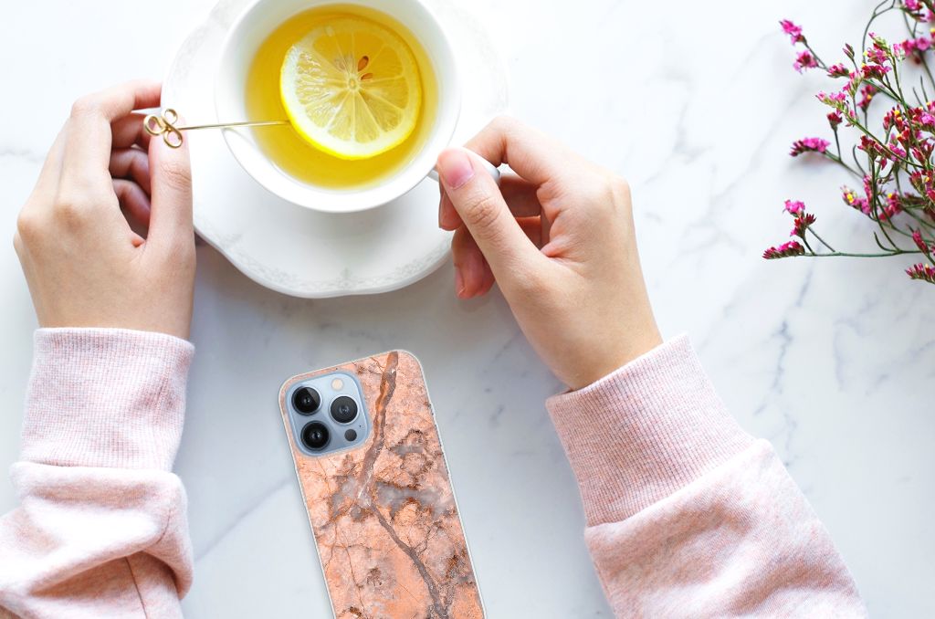Dit design hoesje met Marmer Oranje is zeer geschikt voor jouw kostbare telefoon. Vanwege zijn prachtige lichtval en vastheid is marmer een zeer gewild bouwmateriaal. Wij kunnen inmiddels concluderen dat dit hoesje met oranje marmer ook zeer gewild is. Beloon jezelf en je telefoon met dit hele mooie Apple iPhone 13 Pro TPU Siliconen Hoesje. Naast het oranje marmer zijn er de diverse marmersoorten in een ruim kleurenpallet te krijgen. Deze tpu case met marmer in oranje wordt aan de achterzijde bedrukt. De case beschikt over opstaande randen en is gemaakt van onbreekbaar materiaal. De randen van de case in oranje marmer blijven transparant. Wij hebben onze designer veel vrijheid gegeven met het ontwerpen dit mooie hoesje. Het resultaat zie je terug in deze tpu case met oranje marmer, dat een hele goede bescherming is voor jouw smartphone. Des te mooi dat wij voor variatie hebben gekozen door een hoesje met oranje marmer aan de bieden.
