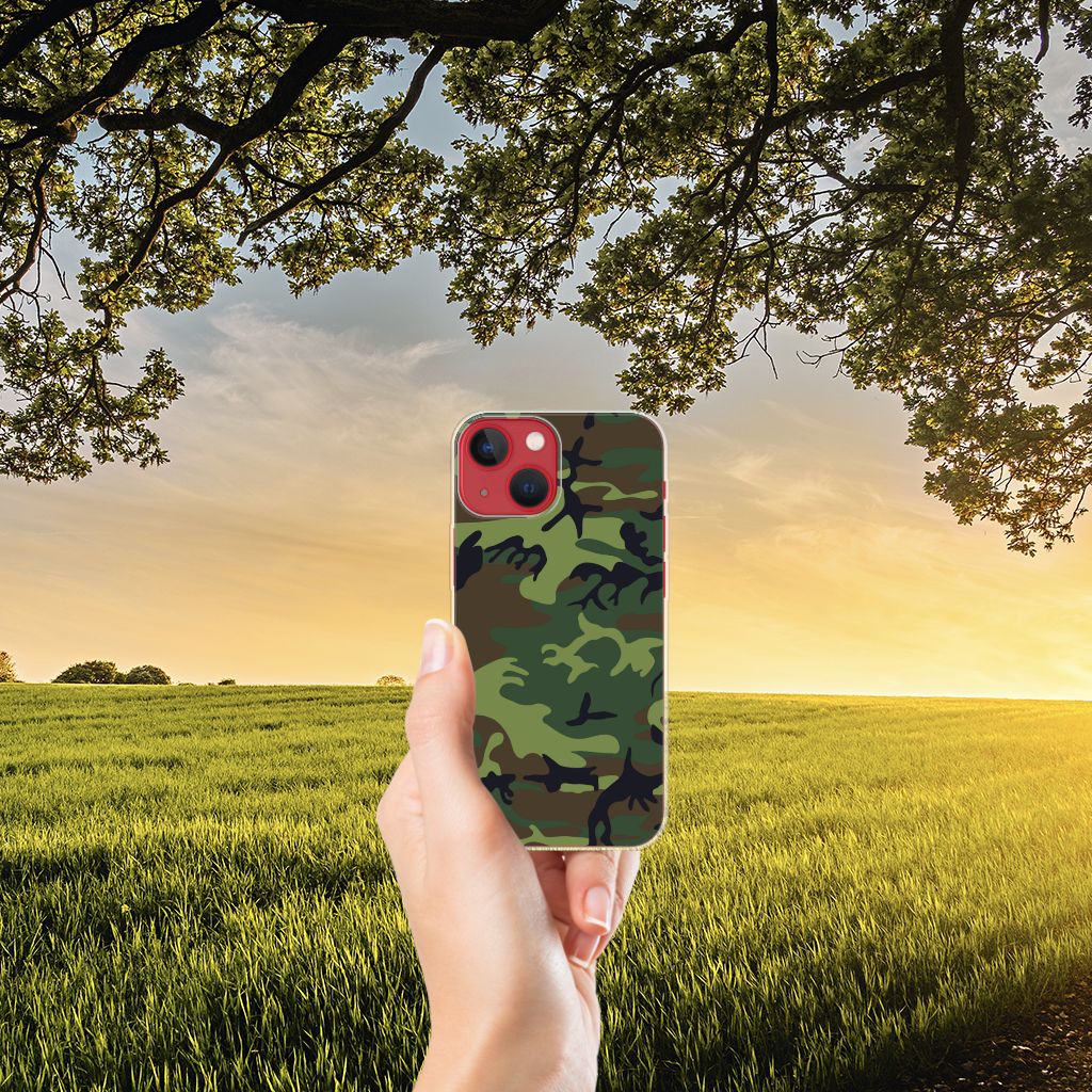 Voel je jezelf verbonden met het leger, dan zal deze Apple iPhone 13 TPU bumper je zeker bevallen. Het tpu hoesje beschikt namelijk over donkere camouflage kleuren. Deze worden vaak gebruikt door mensen die zich graag willen mengen in hun omgeving. Dit Army Dark hoesje is er dus voornamelijk in kleuren die in de natuur voorkomen, zodat je één wordt met je achtergrond. Beschermt de krijgsmacht volk en vaderland, dit hoesje in donkere camouflage kleuren zal jouw telefoon onder alle omstandigheden schadevrij houden. Met een hoesje in dit soort kleuren zal je niet zo snel opvallen. Het design staat op een TPU case. Dit hoesje wordt alleen aan de bovenkant bedrukt met donkere camouflage kleuren en is zeer flexibel. De randen van het hoesje blijven transparant.