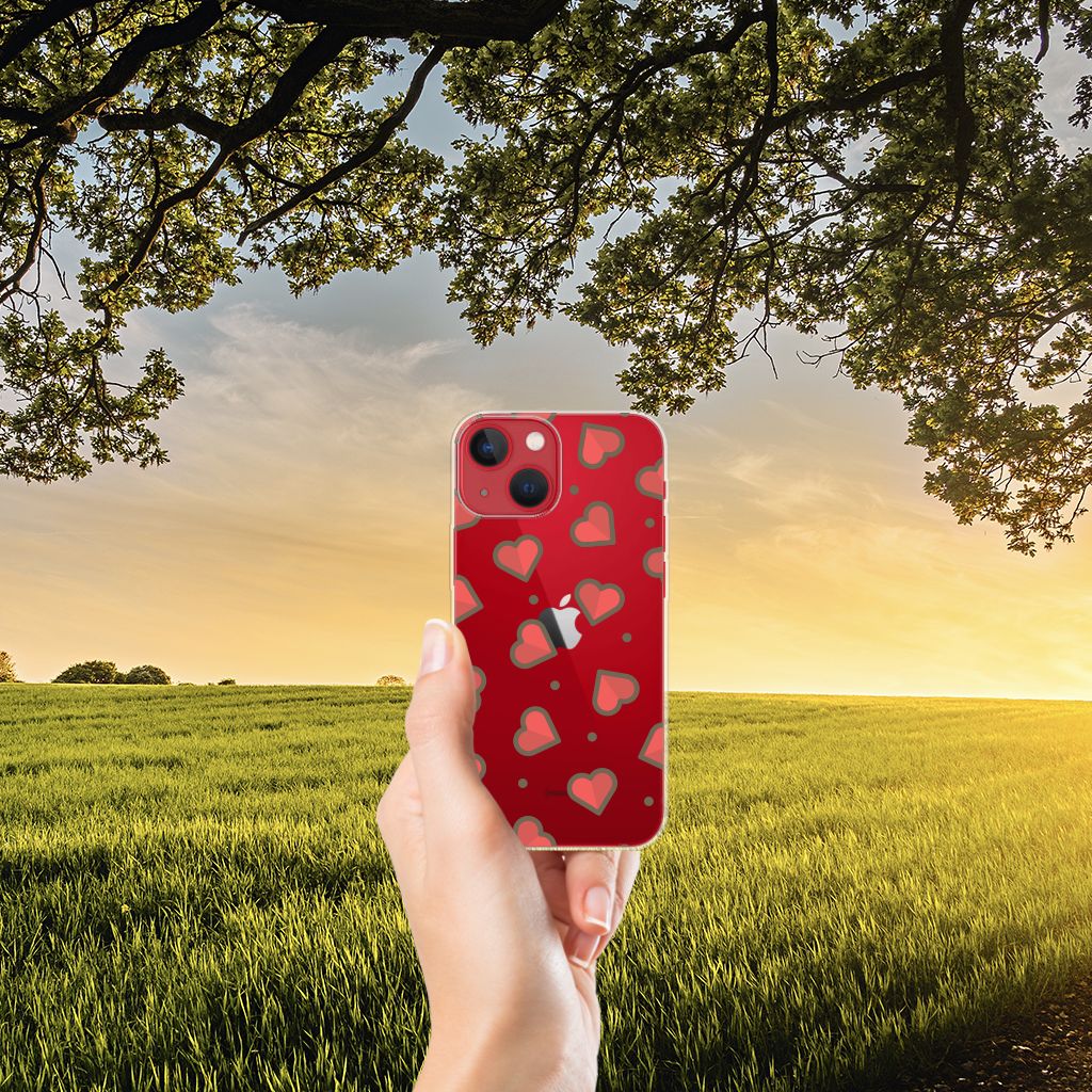 Met deze Apple iPhone 13 TPU bumper met hartjes op een grijs met witte achtergrond maak jij een goede beurt als je dit cadeau geeft aan je vriend of vriendin. Bekroon je liefde voor elkaar met deze hele mooie tpu case, die jouw telefoon met name aan de achterkant en zijkanten goed beschermt. Dit is echt een prachtige manier om je telefoon te beschermen. Het tpu hoesje met design met Hearts is ook nog eens zeer praktisch, mede door het buigzame materiaal en de uitsparingen. Als je telefoon met het TPU hoesje uit je hand valt, stuitert het als het ware meteen weer terug in je hand en zal het scherm in tact blijven. De case heeft namelijk opstaande randen aan de voorkant. Alleen de bovenkant van de case wordt bedrukt met hartjes, de zijkanten zijn doorzichtig. Voor een habbekrats is dit hoesje met hartjes op een grijs met witte achtergrond te bestellen.