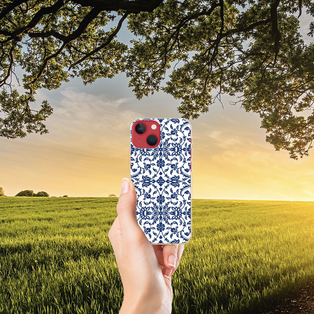 Een plaatje, deze Apple iPhone 13 TPU Case met Flower Blue patroon, die jouw telefoon van een hele mooie uitstraling voorziet. We hebben verschillende soorten patronen in de aanbieding waarmee we jouw hoesje kunnen verrijken, maar dit is wel een van de fraaiste. Maar natuurlijk heeft iedereen zo zijn eigen smaak. Vandaar dat we nog allerlei andere patronen kunnen aanbieden in de leukste kleurencombinaties. Het tpu hoesje met blauwwit patroon beschermt jouw telefoon vooral aan de achterkant en zijkanten en heeft opstaande randen aan de voorkant. De tpu case is zeer flexibel dankzij het elastische materiaal. Wij bedrukken de case in eigen beheer. De zijkanten van de tpu case blijven transparant en krijgen dus geen blauwwit patroon. Alleen de achterzijde van de hoes wordt bedrukt. Heb je een rijke fantasie? Ontwerp dan je eigen design hoesje met favoriet patroon.