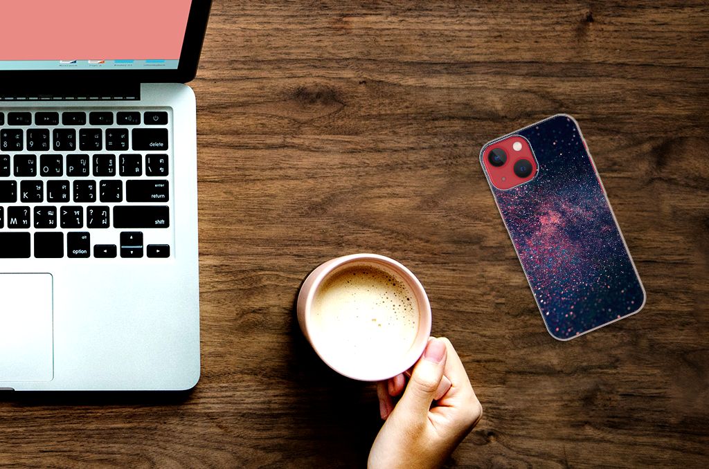 Je waant je in de zevende hemel met dit kunstzinnige, glitterachtige design hoesje met paarse en blauwe kleuren tegen een inktzwarte achtergrond. Het smartphone hoesje heeft ook een wat science fiction achtige allure. Met deze design Stars case zul je zeker opvallen. Als dit je bedoeling is, bestel dat snel dit waanzinnig mooie product voor je Apple iPhone 13. Het telefoonhoesje is van alle gemakken voorzien en combineert een hele fraaie uitstraling met maximaal comfort. Bovendien is het gemaakt van zeer stevig en flexibel materiaal. Het unieke design, door B2C Telecom ontworpen, staat op een TPU Hoesje. Dit hoesje wordt alleen aan de bovenkant bedrukt en is zeer flexibel. De randen van het hoesje blijven transparant en worden niet bedrukt. Met dit hoesje past jouw telefoon altijd in je broekzak.
