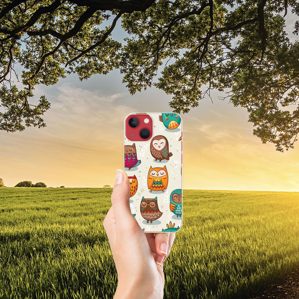 Deze Apple iPhone 13 TPU Hoesje met Vrolijke Uilen is echt iets voor de nachtbrakers onder ons. De uil is zoals je weet bij uitstek een vogel die in de nachtelijke uren actief is. Ben jij ook iemand die s ’nachts tot leven komt, dan is deze tpu case met uilen in felle kleuren echt iets voor jou. Als je tot in de late uurtjes op stap bent, komt het goed uit dat jouw smartphone zeer goed is beschermd met deze tpu case met uilen. De case met uilen heeft opstaande randen aan de voorzijde, waardoor het touchscreen de grond niet raakt als de smartphone uit je handen valt. Verder is het onbreekbare TPU zeer flexibel en schokabsorberend. Dit komt het design ten goede. De zijkanten van de TPU case met print van uilen worden niet bedrukt, maar de bovenzijde wel. De wat ruigere types hebben veel baat bij deze tpu case met uilen in felle kleuren.