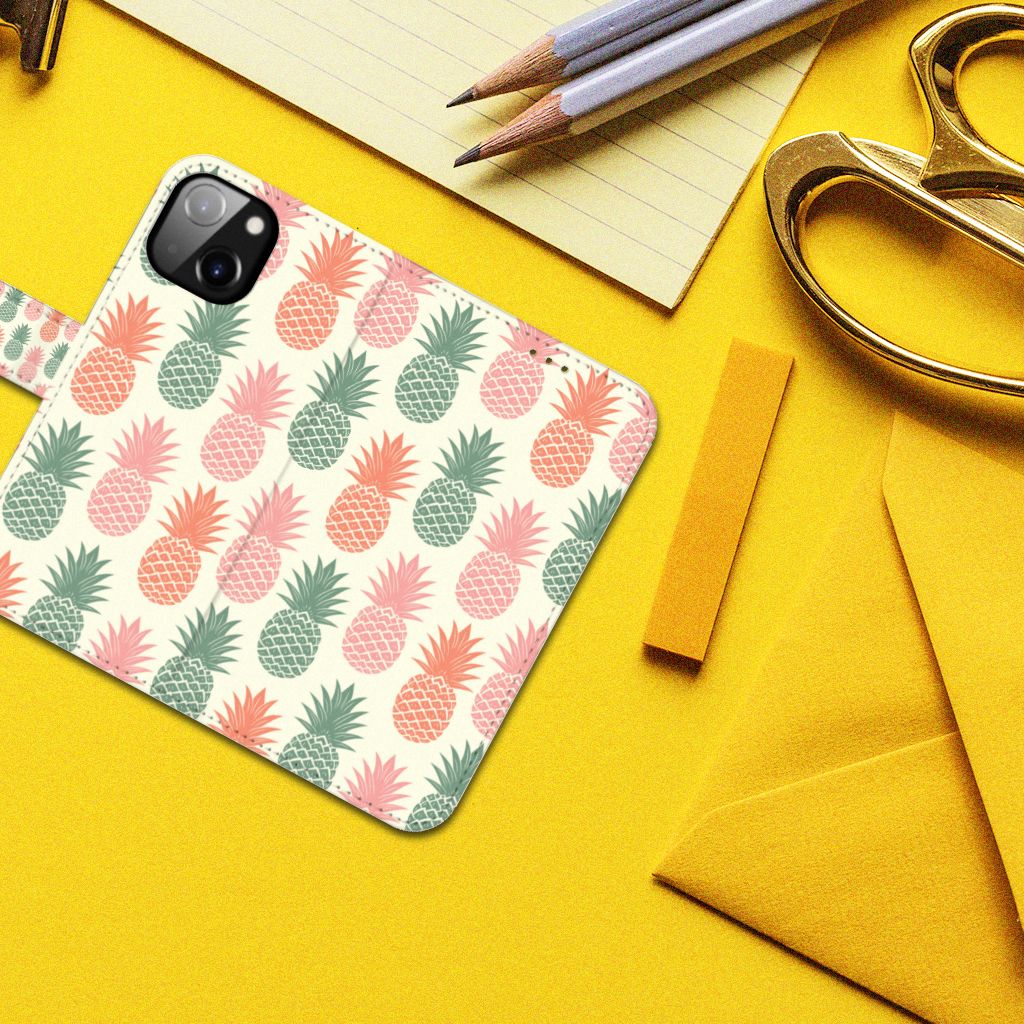 Apple iPhone 14 Bookcover met pasjes Ananas