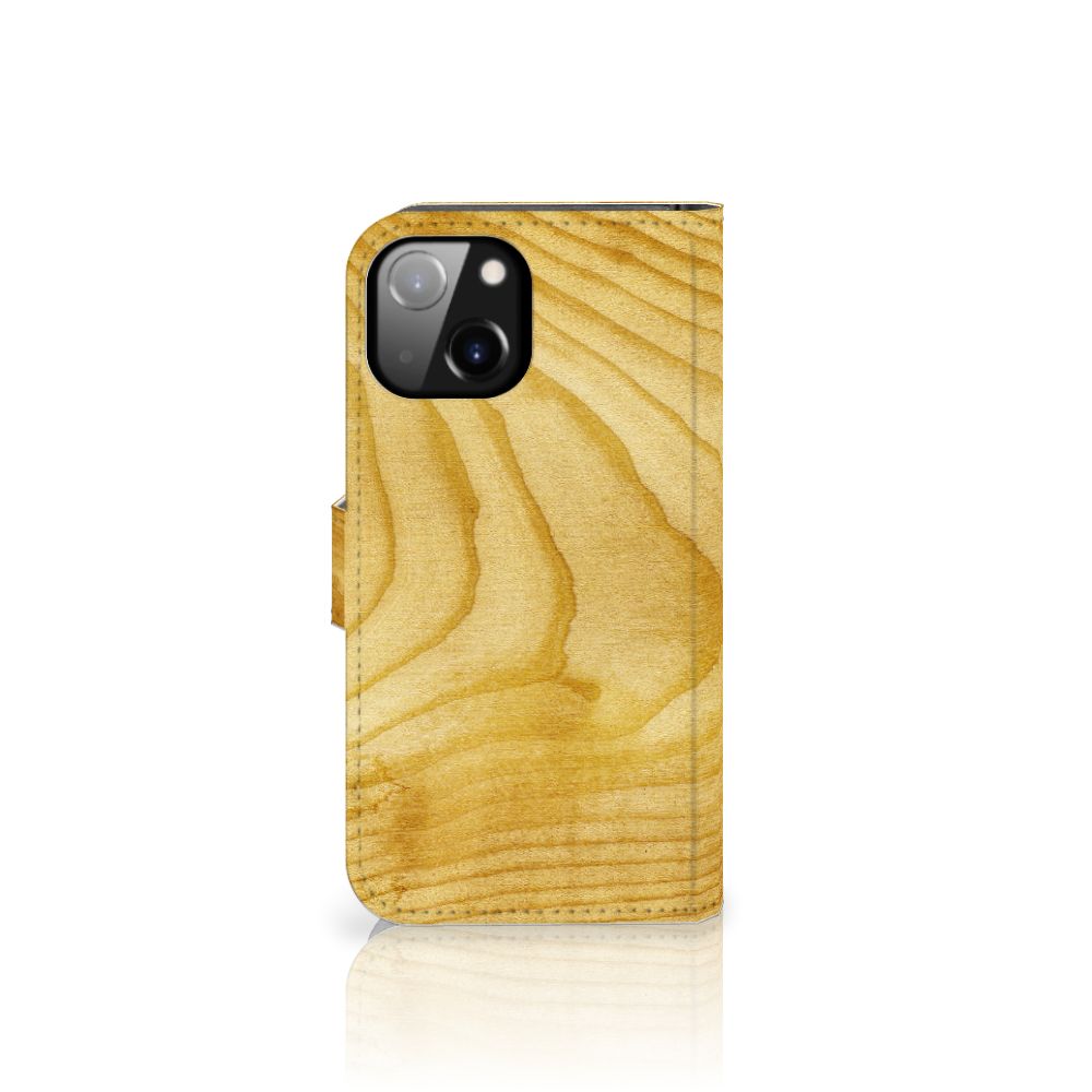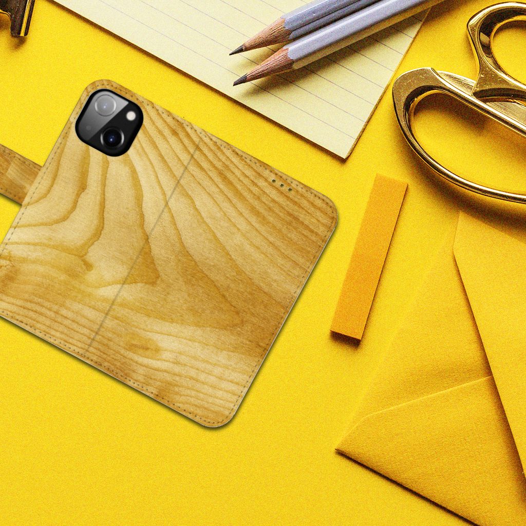 Apple iPhone 14 Bookstyle Case met pasjes en magnetisch lipje Licht Hout