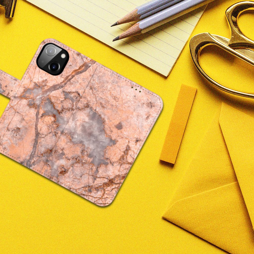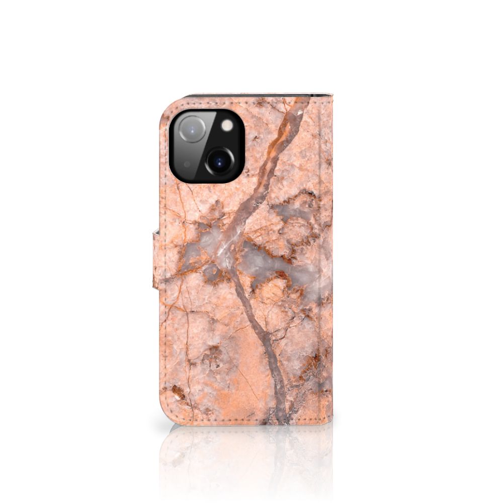 Apple iPhone 14 Bookcase met pasjes Marmer Oranje