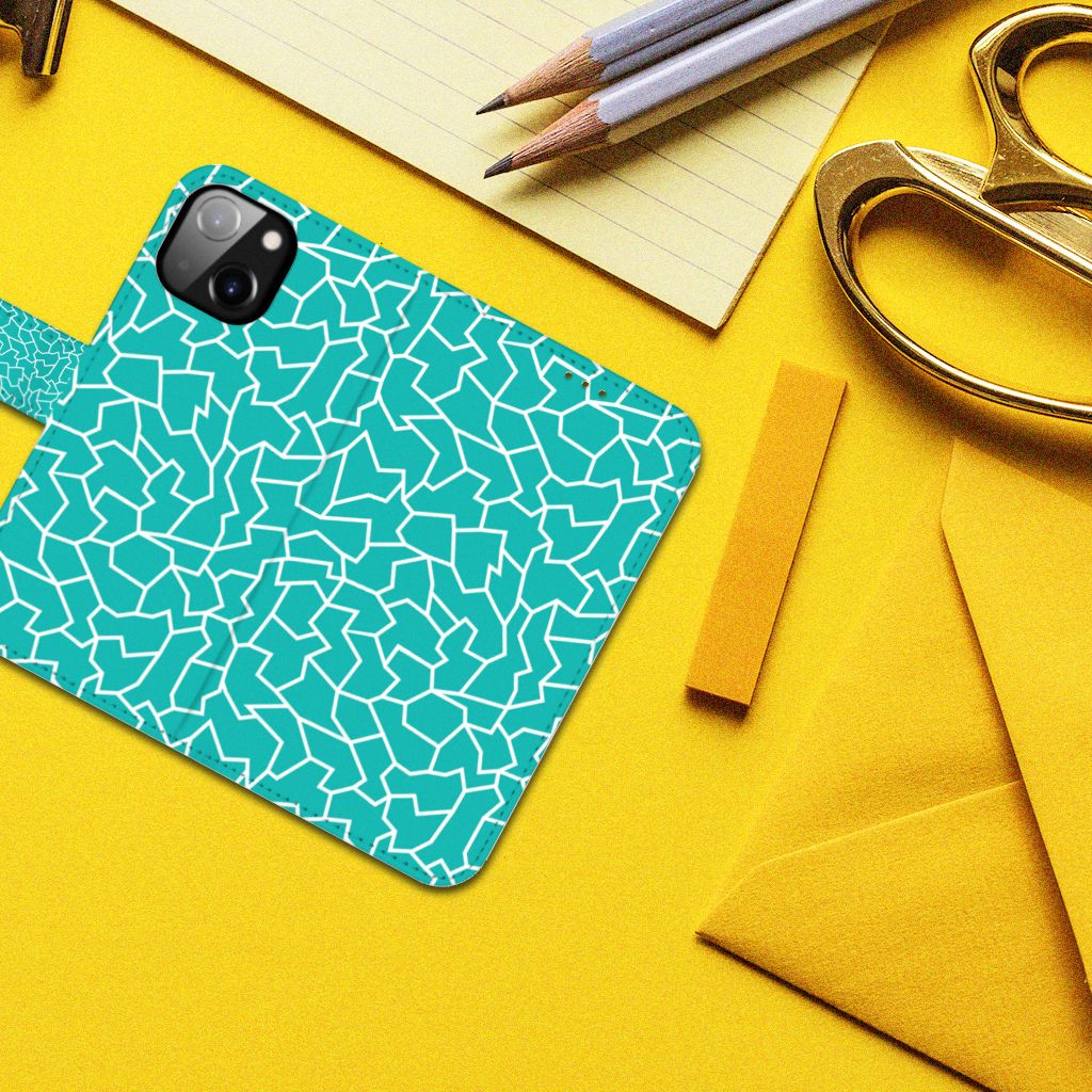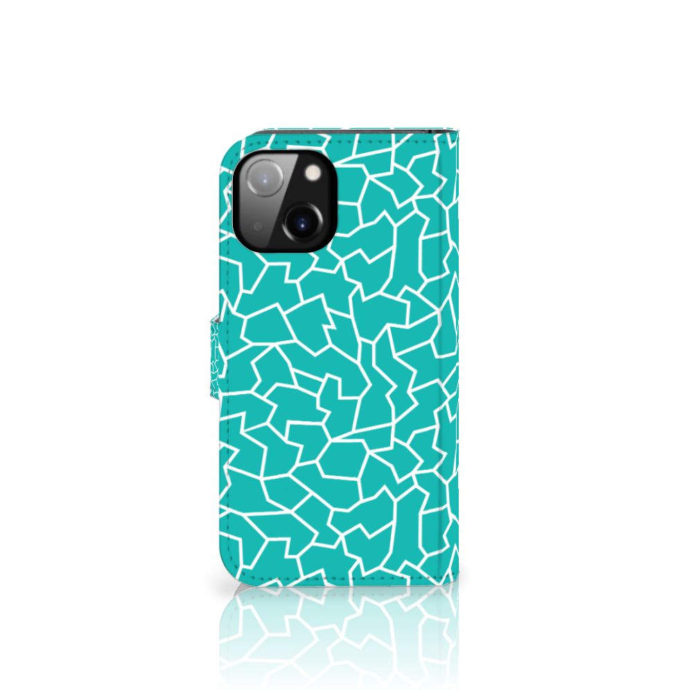 Apple iPhone 14 Book Case Zwart Roze Vormen