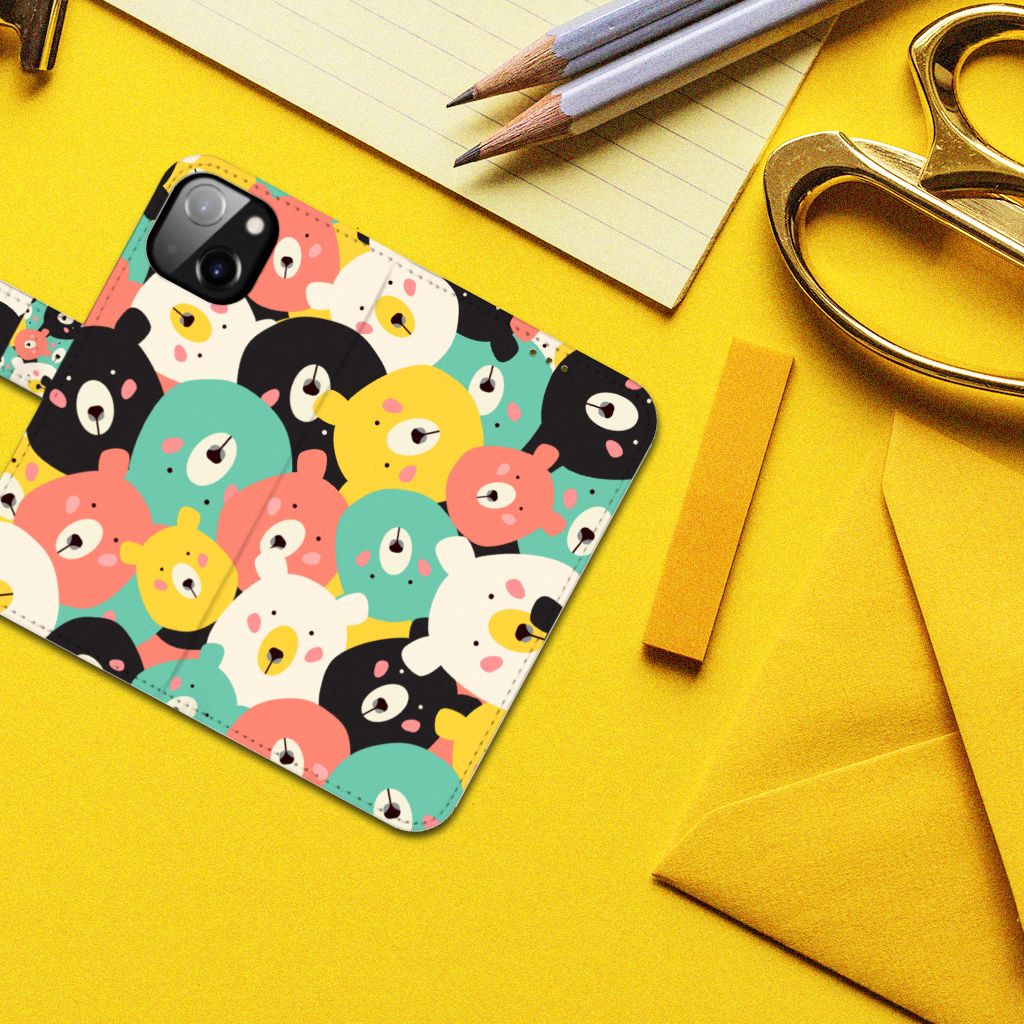 Op dit hoesje vind je een bereschattig ontwerp! Vergeef ons de woordgrap, maar hoe moeten we dit lieve ontwerp anders omschrijven? Op dit knuffelige ontwerp zie je leuke, getekende beertjes in vrolijke kleuren als geel, blauw en roze. Dankzij de contrasterende witte en zwarte beertjes vallen de felle kleurtjes nog meer op. Al met al is dit Leuk Hoesje voor de Apple iPhone 14 een perfect hoesje voor de knuffelberen onder ons. Een boekhoesje is perfect voor iedereen die niet graag allerlei losse dingen meesleept. Met dit hoesje heb je namelijk je belangrijkste bezittingen bij de hand. Binnenin zit namelijk een pasjeshouder voor twee pasjes. Daar bewaar je je belangrijkste (bank)passen in of je briefgeld. Super handig en heel erg mooi. En bovenal is je telefoon met dit bears-ontwerp goed beschermd tegen krassen en beschadigingen.