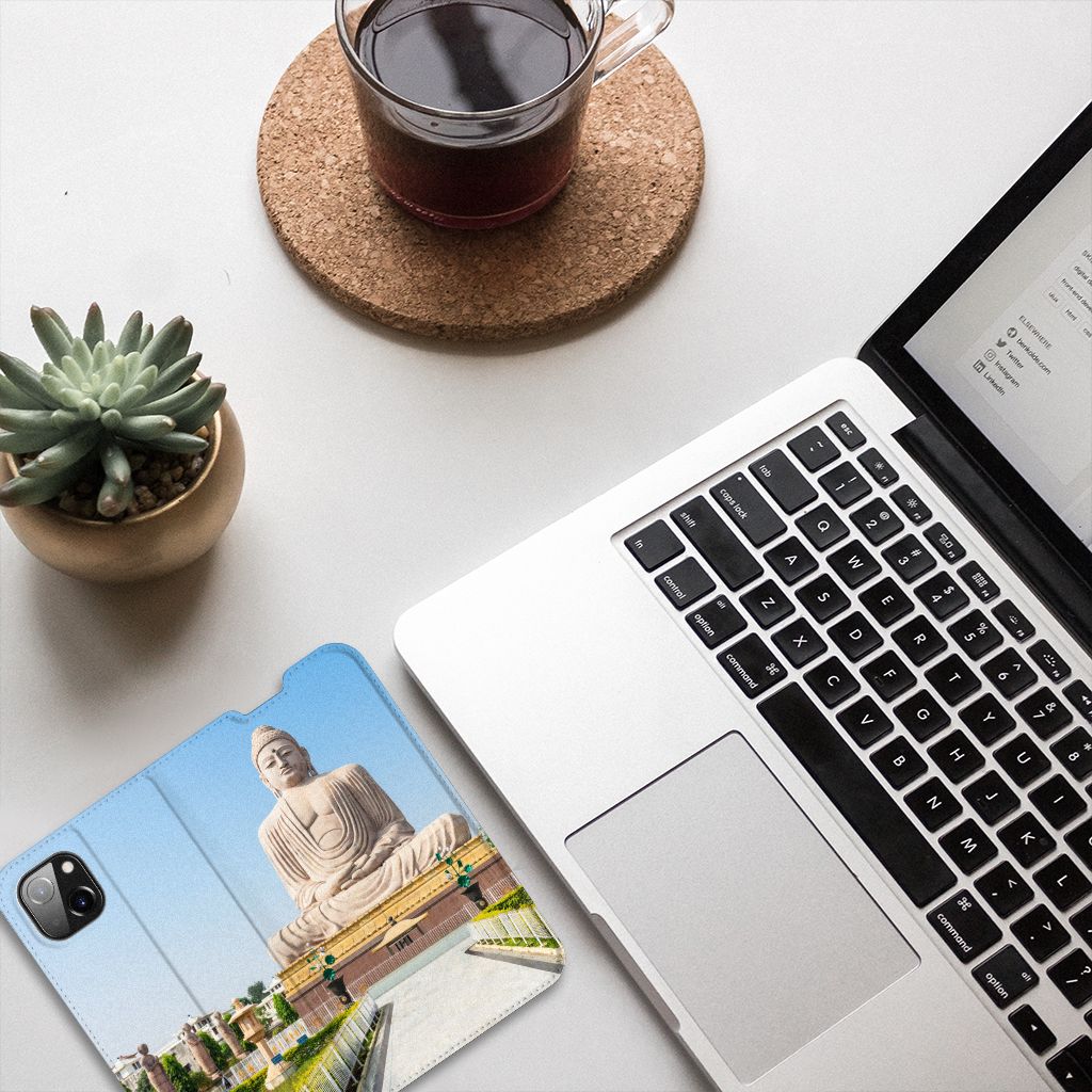 Van dit hoesje met boeddha print word je vanzelf rustig van binnen. Een boeddha staat te allen tijde voor geluk, symbolische genezing, liefde voor de ander, maar ook voor eigenwaarde. Daarnaast staat de boeddha symbool voor eeuwige vriendschap. Boeddhabeelden zie je vooral in tempels, maar tegenwoordig zien we ze ook steeds vaker in huizen en tuinen staan. Een boeddha dient met respect te worden behandeld. Doe dat dus ook met je telefoon. Dat kan met dit hoesje met Boeddha print. De case zorgt ervoor dat jij en je telefoon voor langere tijd in harmonie samen kunnen leven. Het design staat op een Apple iPhone 14 Plus Book Cover. Deze case beschermt jouw telefoon aan alle kanten en beschikt over een 1 opbergvakje en een speciale standaard. Het hoesje wordt afgesloten met een magneet aan de binnenzijde. De houder aan de binnenzijde is van TPU. Alle zijden van de stand case worden bedrukt.