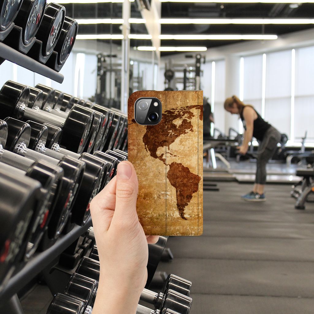 Als je een hoesje koopt met een wereldkaart, kun jij op veilige wijze met je smartphone rond de wereld reizen. Ga je zonder een boekhoesje met wereldkaart het buitenland verkennen, dan loop je veel te groot risico dat je stukken krijgt aan je smartphone. Met als gevolg dat je de belangrijke gebeurtenissen op je reis wellicht niet meer vast kunt leggen om door te sturen aan je vrienden. In het slechtste geval wordt jouw toestel zonder een smartphone hoesje met wereldkaart onbruikbaar. Wij kunnen de wereldkaart bedrukken op een stand case. Een Apple iPhone 14 Plus Book Cover beschermt jouw telefoon aan alle kanten en beschikt over een 1 opbergvakje en een speciale standaard. Het hoesje wordt afgesloten met een magneet aan de binnenzijde. De houder aan de binnenzijde is van TPU. Dit stand hoesje met wereldkaart is voor een zeer laag bedrag te bestellen.