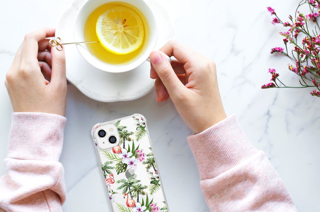 Ben je op zoek naar een uniek telefoonhoesje voor je Apple iPhone 14 Plus? Dan ben je bij B2C Telecom aan het juiste adres! Speciaal voor jou hebben we dit prachtige Flamingo Palms design in onze collectie hoesjes opgenomen. Het design wordt bedrukt op een Case Anti-shock en is gemaakt van flexibel rubber. Het hoesje is perfect voor de actieve smartphonegebruiker door de opstaande randen/hoeken. Denk aan mensen die veel sporten, reizen of wandelen en net iets meer zekerheid willen als het op hun geliefde telefoon aankomt. Het design wordt alleen aan de bovenkant van het hoesje bedrukt en de randen blijven transparant. Aan de zijkanten zijn uitsparingen gemaakt waardoor je met gemak alle knoppen en poorten kunt bedienen. Wij adviseren om dit hoesje in combinatie met een screenprotector te gebruiken voor een langere levensduur van je telefoon. Wil je dit hoesje nog iets extra's geven? Voeg dan gratis je naam of een quote toe! Is dit design hoesje toch niet helemaal wat je zocht? Ontwerp dan zelf een hoesje in ons ontwerpprogramma.