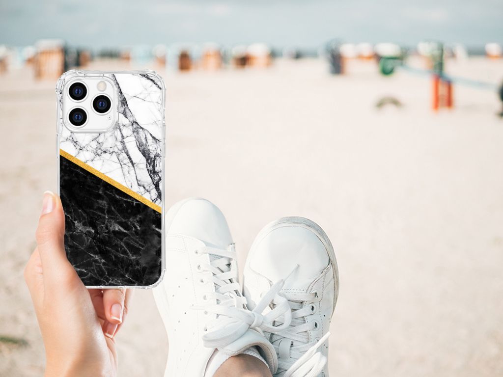 Ben je op zoek naar een uniek telefoonhoesje voor je Apple iPhone 14 Pro Max? Dan ben je bij B2C Telecom aan het juiste adres! Speciaal voor jou hebben we dit prachtige Marble White Black design in onze collectie hoesjes opgenomen. Het design wordt bedrukt op een Anti-Shock Hoesje en is gemaakt van flexibel rubber. Het hoesje is perfect voor de actieve smartphonegebruiker door de opstaande randen/hoeken. Denk aan mensen die veel sporten, reizen of wandelen en net iets meer zekerheid willen als het op hun geliefde telefoon aankomt. Het design wordt alleen aan de bovenkant van het hoesje bedrukt en de randen blijven transparant. Aan de zijkanten zijn uitsparingen gemaakt waardoor je met gemak alle knoppen en poorten kunt bedienen. Wij adviseren om dit hoesje in combinatie met een screenprotector te gebruiken voor een langere levensduur van je telefoon. Wil je dit hoesje nog iets extra's geven? Voeg dan gratis je naam of een quote toe! Is dit design hoesje toch niet helemaal wat je zocht? Ontwerp dan zelf een hoesje in ons ontwerpprogramma.