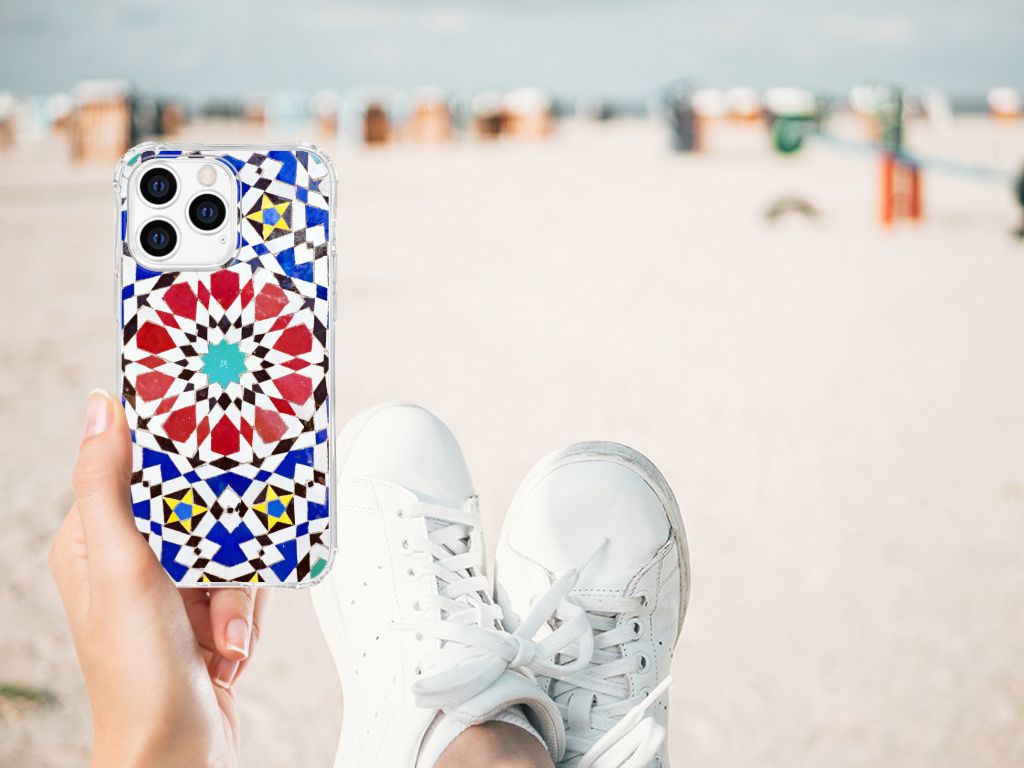 Ben je op zoek naar een uniek telefoonhoesje voor je Apple iPhone 14 Pro Max? Dan ben je bij B2C Telecom aan het juiste adres! Speciaal voor jou hebben we dit prachtige Mozaïek design in onze collectie hoesjes opgenomen. Het design wordt bedrukt op een Anti-Shock Hoesje en is gemaakt van flexibel rubber. Het hoesje is perfect voor de actieve smartphonegebruiker door de opstaande randen/hoeken. Denk aan mensen die veel sporten, reizen of wandelen en net iets meer zekerheid willen als het op hun geliefde telefoon aankomt. Het design wordt alleen aan de bovenkant van het hoesje bedrukt en de randen blijven transparant. Aan de zijkanten zijn uitsparingen gemaakt waardoor je met gemak alle knoppen en poorten kunt bedienen. Wij adviseren om dit hoesje in combinatie met een screenprotector te gebruiken voor een langere levensduur van je telefoon. Wil je dit hoesje nog iets extra's geven? Voeg dan gratis je naam of een quote toe! Is dit design hoesje toch niet helemaal wat je zocht? Ontwerp dan zelf een hoesje in ons ontwerpprogramma.