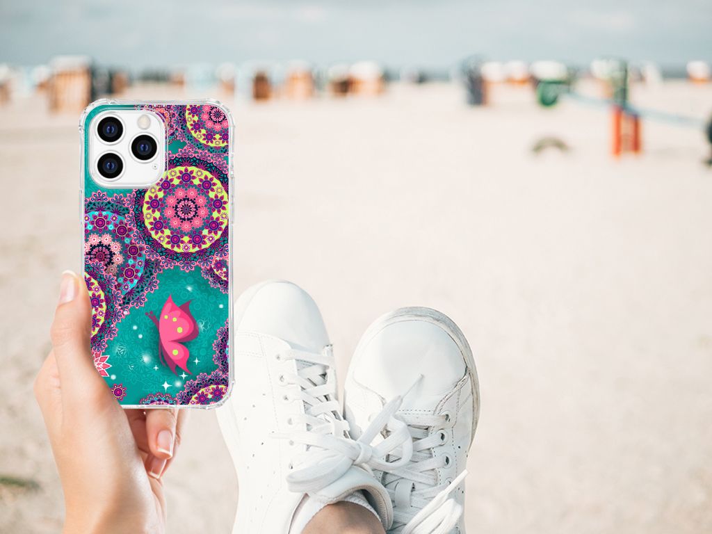 Ben je op zoek naar een uniek telefoonhoesje voor je Apple iPhone 14 Pro Max? Dan ben je bij B2C Telecom aan het juiste adres! Speciaal voor jou hebben we dit prachtige Cirkels en Vlinders design in onze collectie hoesjes opgenomen. Het design wordt bedrukt op een Back Cover en is gemaakt van flexibel rubber. Het hoesje is perfect voor de actieve smartphonegebruiker door de opstaande randen/hoeken. Denk aan mensen die veel sporten, reizen of wandelen en net iets meer zekerheid willen als het op hun geliefde telefoon aankomt. Het design wordt alleen aan de bovenkant van het hoesje bedrukt en de randen blijven transparant. Aan de zijkanten zijn uitsparingen gemaakt waardoor je met gemak alle knoppen en poorten kunt bedienen. Wij adviseren om dit hoesje in combinatie met een screenprotector te gebruiken voor een langere levensduur van je telefoon. Wil je dit hoesje nog iets extra's geven? Voeg dan gratis je naam of een quote toe! Is dit design hoesje toch niet helemaal wat je zocht? Ontwerp dan zelf een hoesje in ons ontwerpprogramma.