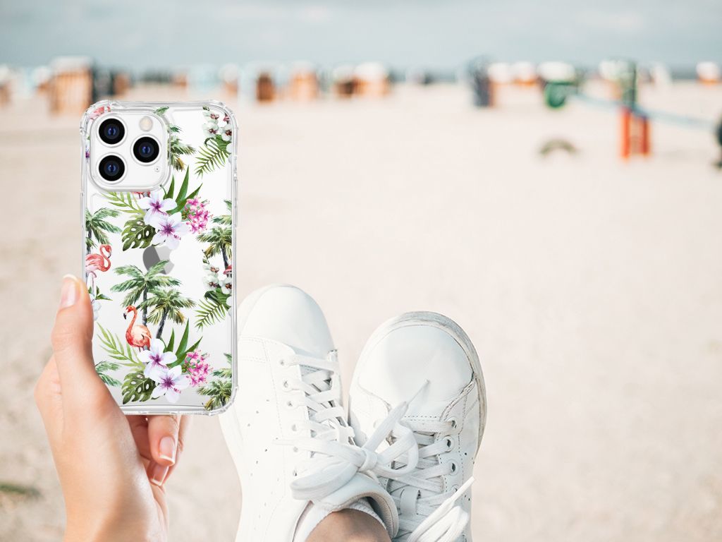 Ben je op zoek naar een uniek telefoonhoesje voor je Apple iPhone 14 Pro Max? Dan ben je bij B2C Telecom aan het juiste adres! Speciaal voor jou hebben we dit prachtige Flamingo Palms design in onze collectie hoesjes opgenomen. Het design wordt bedrukt op een Case Anti-shock en is gemaakt van flexibel rubber. Het hoesje is perfect voor de actieve smartphonegebruiker door de opstaande randen/hoeken. Denk aan mensen die veel sporten, reizen of wandelen en net iets meer zekerheid willen als het op hun geliefde telefoon aankomt. Het design wordt alleen aan de bovenkant van het hoesje bedrukt en de randen blijven transparant. Aan de zijkanten zijn uitsparingen gemaakt waardoor je met gemak alle knoppen en poorten kunt bedienen. Wij adviseren om dit hoesje in combinatie met een screenprotector te gebruiken voor een langere levensduur van je telefoon. Wil je dit hoesje nog iets extra's geven? Voeg dan gratis je naam of een quote toe! Is dit design hoesje toch niet helemaal wat je zocht? Ontwerp dan zelf een hoesje in ons ontwerpprogramma.